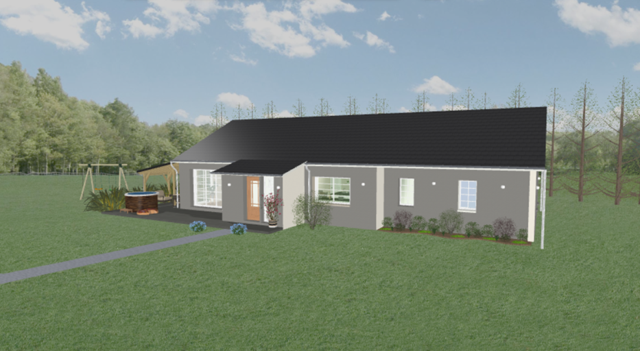Maja tuleks 140m2, kivimaja, viilkatus, ühe korruseline.