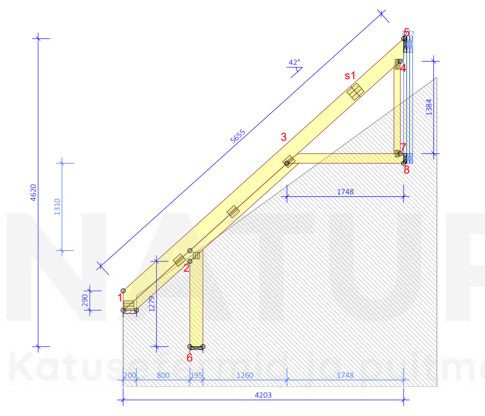 * Sarikapikenduste paigaldus fermidele. Räästaots peab jääma 600mm uuest fassaadist ehk ca 830 palkseinast.