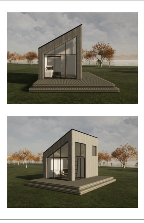 Ehitatame terve moodulina tehases valmis ja kraanaga paigaldus krundile. Maja väljast viimistletud, seest valmis sisetöödeks. Veetud elektrikaablid ja ette valmistatud kilp, kommunikatsioonid (vesi, kanal) paigaldatud. Soojustus avatud pooriga PUR vaht. Karkassi jäigastus-tuuletõkke on OSB. |