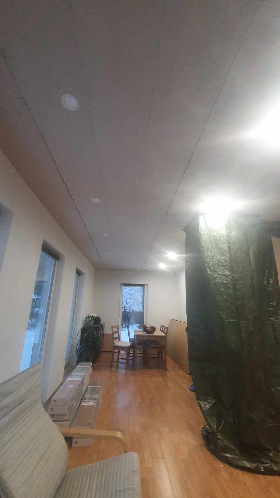 Lihvime tolmuvabalt, võimalus ka pritsiga värvida ( jääb eriti mõnusa tekstuuriga ja ühtlane lagi) Vuukidesse kasutaks knauf fill and finish ja lauspahtel knauf super finishiga. Krunt vicacolor primer ja vivacolor ceiling 3 värvina. Lambid tuleks enne lae viimistlust eemaldada. Parimat E. |
