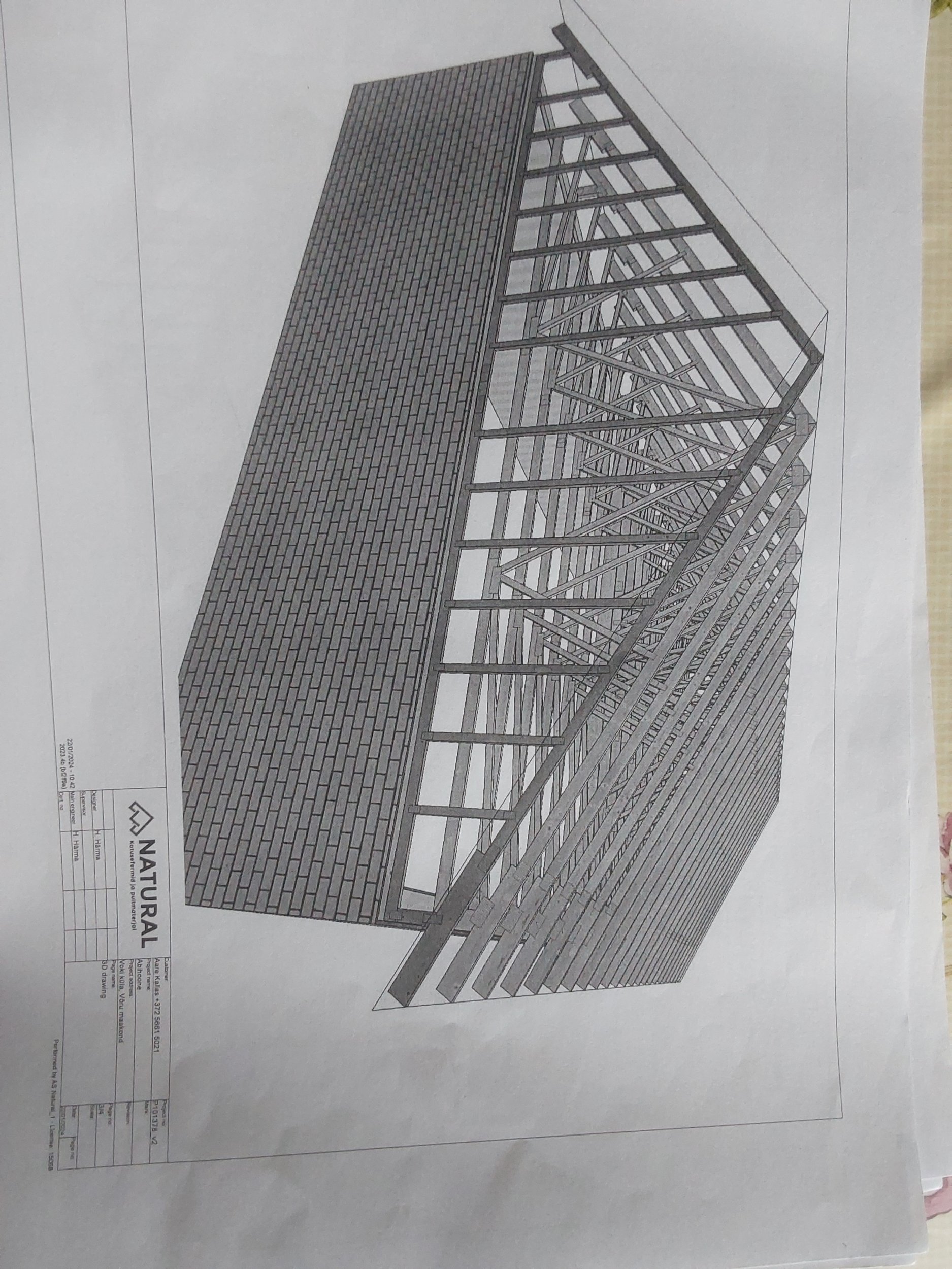 Kuna vajalike tööde nimekiri on suhteliselt ebatäpne pakkumise tegemiseks, siis pakume võimalust, et tuleme vaatame objekti üle, paneme kirja nimekirja tegemist vajavatest töödest ning vastavalt sellele teeme täpse hinnapakkumise. Fermide paigaldus, eterniidi paigaldus, harjapleki paigaldus, tuulekastid ja otsa seinte kinni panek maksaks hinnanguliselt 19 000 eurot. Materjali ja tehnikat pole sisse arvestatud. Tegemist on hinnapakkumisega objekti üle vaatamiseks. |