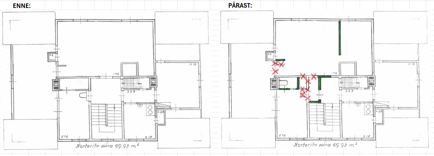 Korteri ja koridori vaheseina (palksein, milles on kaks kinniehitatud originaal ukseava) lammutamine (seina mõõdud 180 x h250)