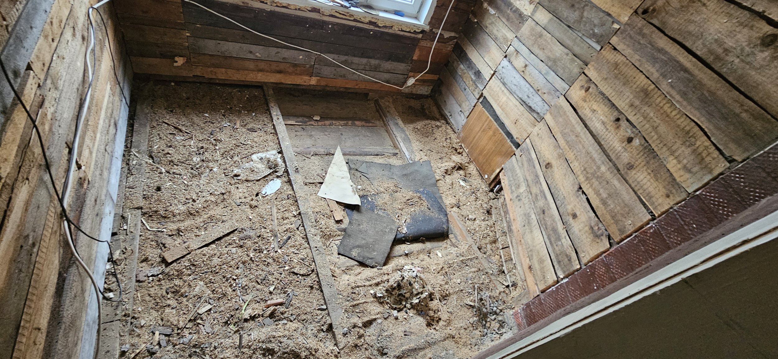 Teise korruse põrandapinna taastamine, vana laudise ja isolatsiooni eemaldamine (saepuru), vajadusel lisatalade paigaldus, olemasolevate talade tugevdamine/vehetamine vastavalt vajadusele.