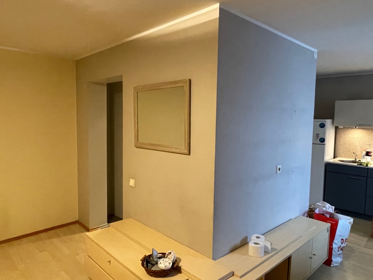 2. Esiku, elutoa ja ilmselt ka vannitoa seinte, lagede ülevärvimine. Kus tarvis, ka pahteldamine, kruviaukude täitmine. Kokku u 35-40m2 seinapinda (miinus aknad, ukseavad)