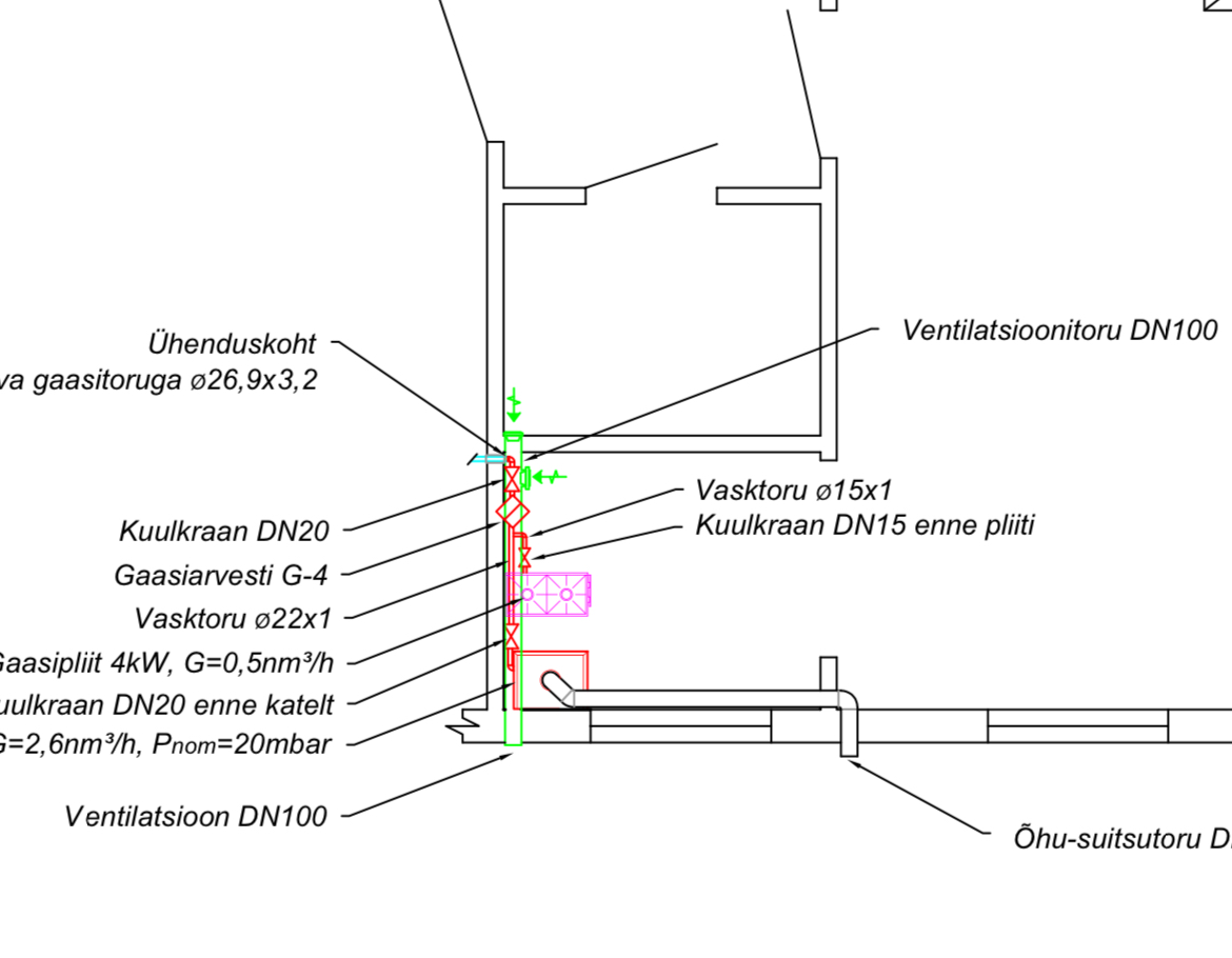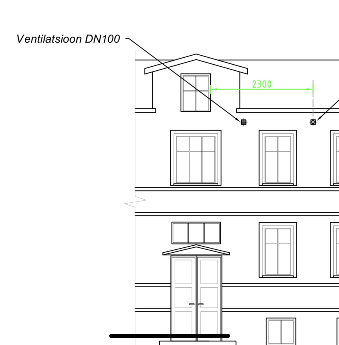 Läbi 2. korruse korteri palkmaja seina oleks vaja rajada ventilatsiooni ava ning paigaldada korterisse projekti järgi ventilatsioon+kubuga ühendamise võimalus. Ventilatsioonitoru pikkus toas on ca 193 cm (sealhulgas vannitoast väljatuleva ventilatsiooni paigaldamisest on olemas 110 cm pikkune toru).