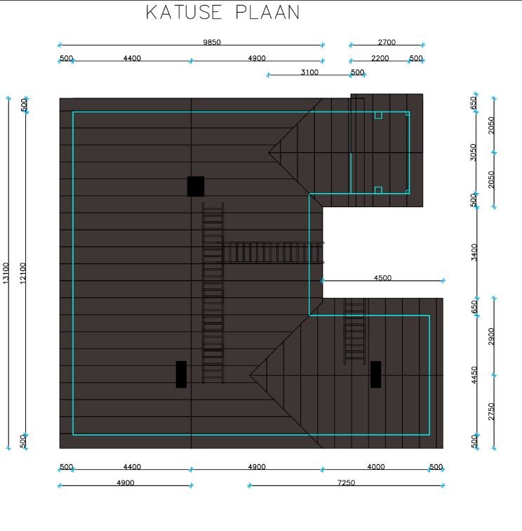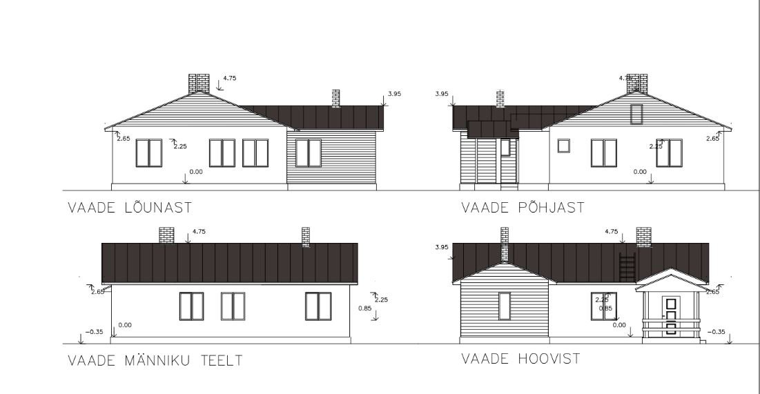 Vajalik on välja ehitada kahepoolse kaldega katus peaukse kohal ja lisaks sellele kahepoolse kaldega varikatus (mis on maja projektis, kuid varasemalt ehitamata).
