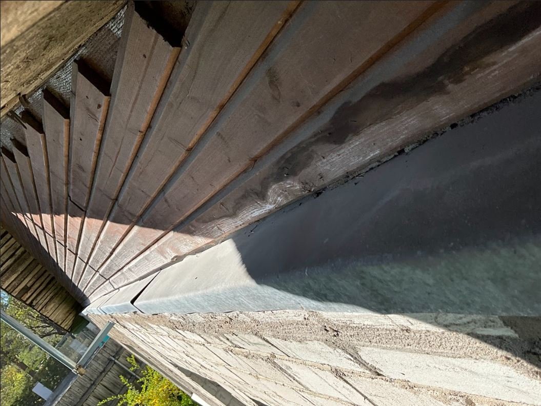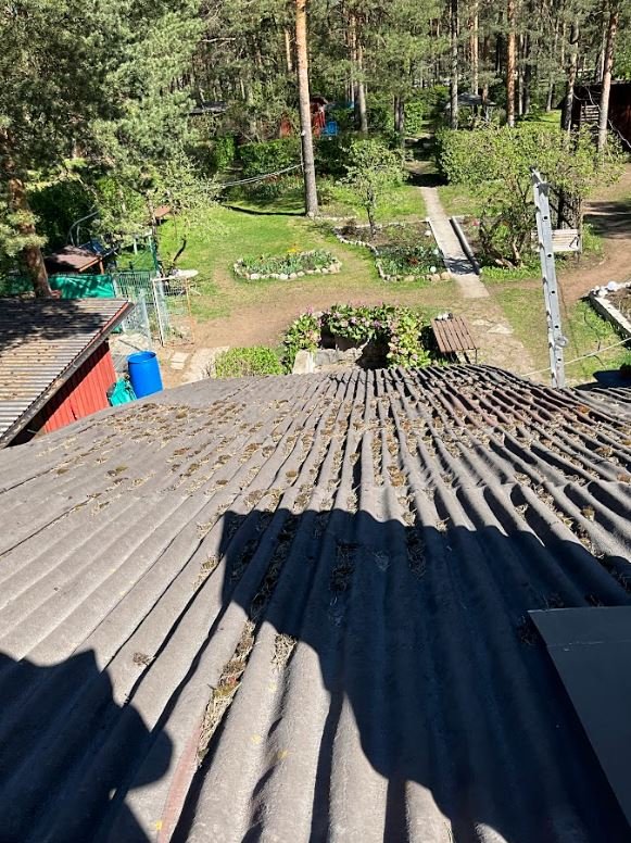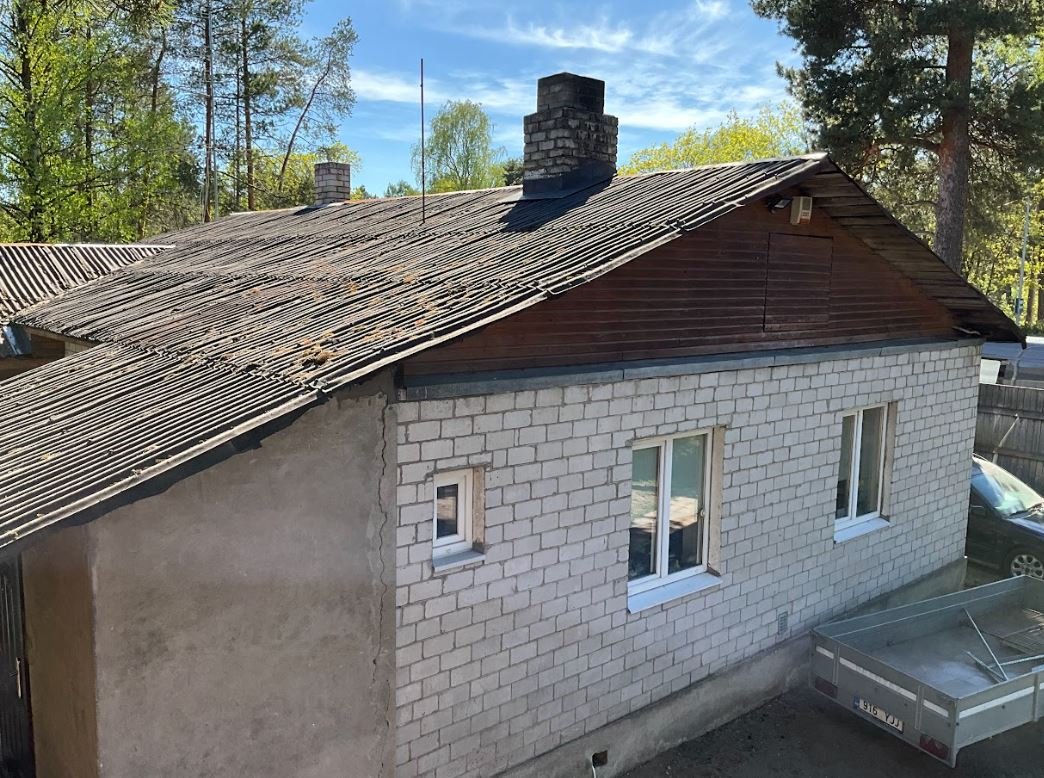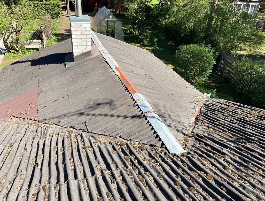 Vahetada katusekate bituumenplaat Onduline käsi-valtsplekk või klassik plekk tüüp katusekatte vastu (värvus tumehall RR23). Bituumenplaadi all on ruberoid. Katuse pindala umbes 190 m².