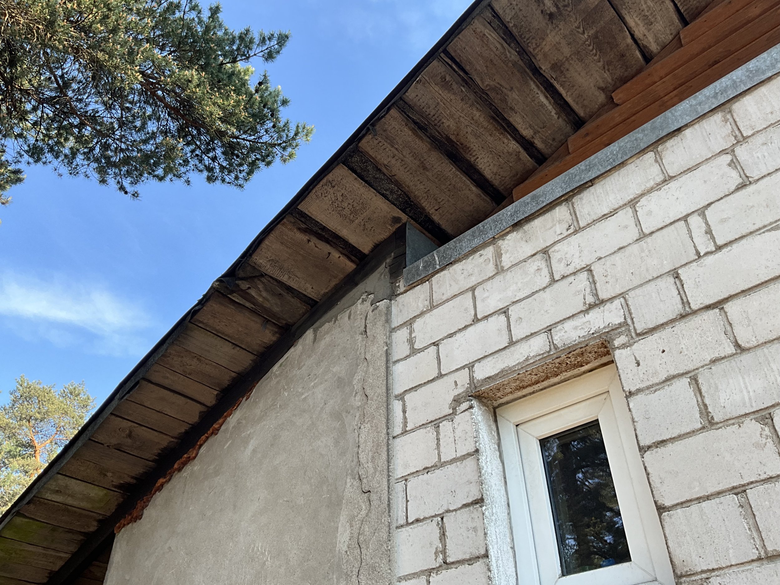 Samuti tuleb ehitada katuse uus otsasein mõlemal poolel, viimistledes see voodrilauaga maja välisfassaadiga tasaseks (praegune on fassaadist seespool).