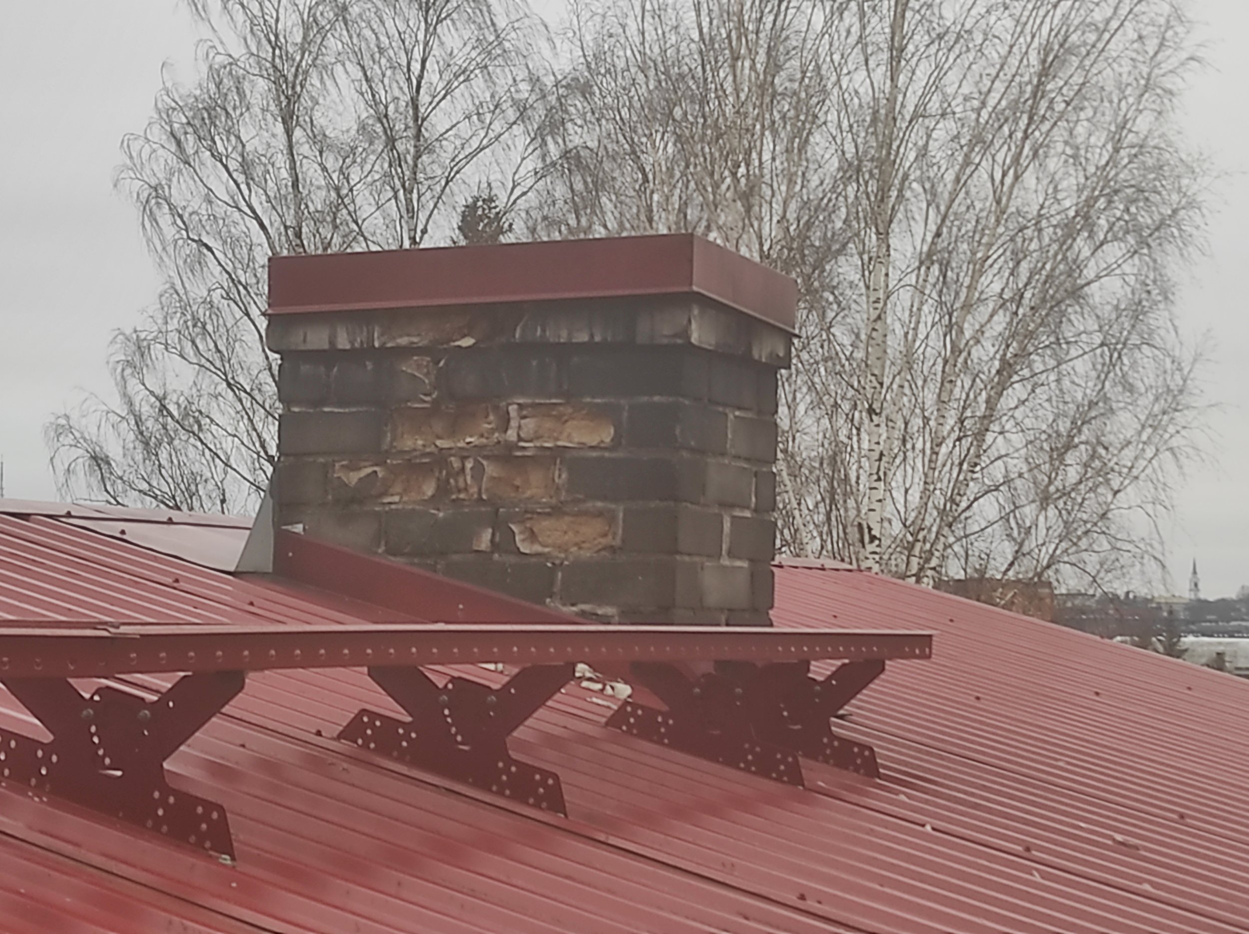 Korstna pits laguneb nii seest kui väljast. Laotud silikaadist. Kogu korstna väljaulatuv osa oleks vist tarvis uuesti laduda ja kontrollida ka lõõri olekut, vajadusel korrastada.
