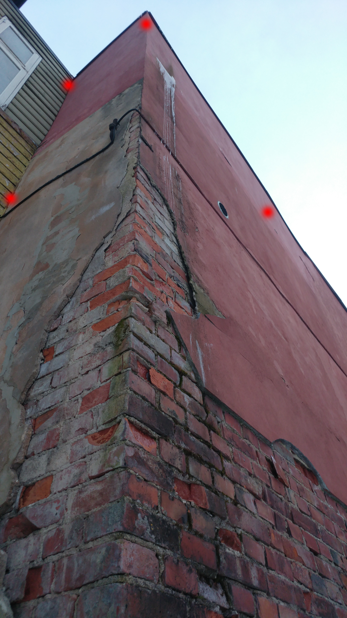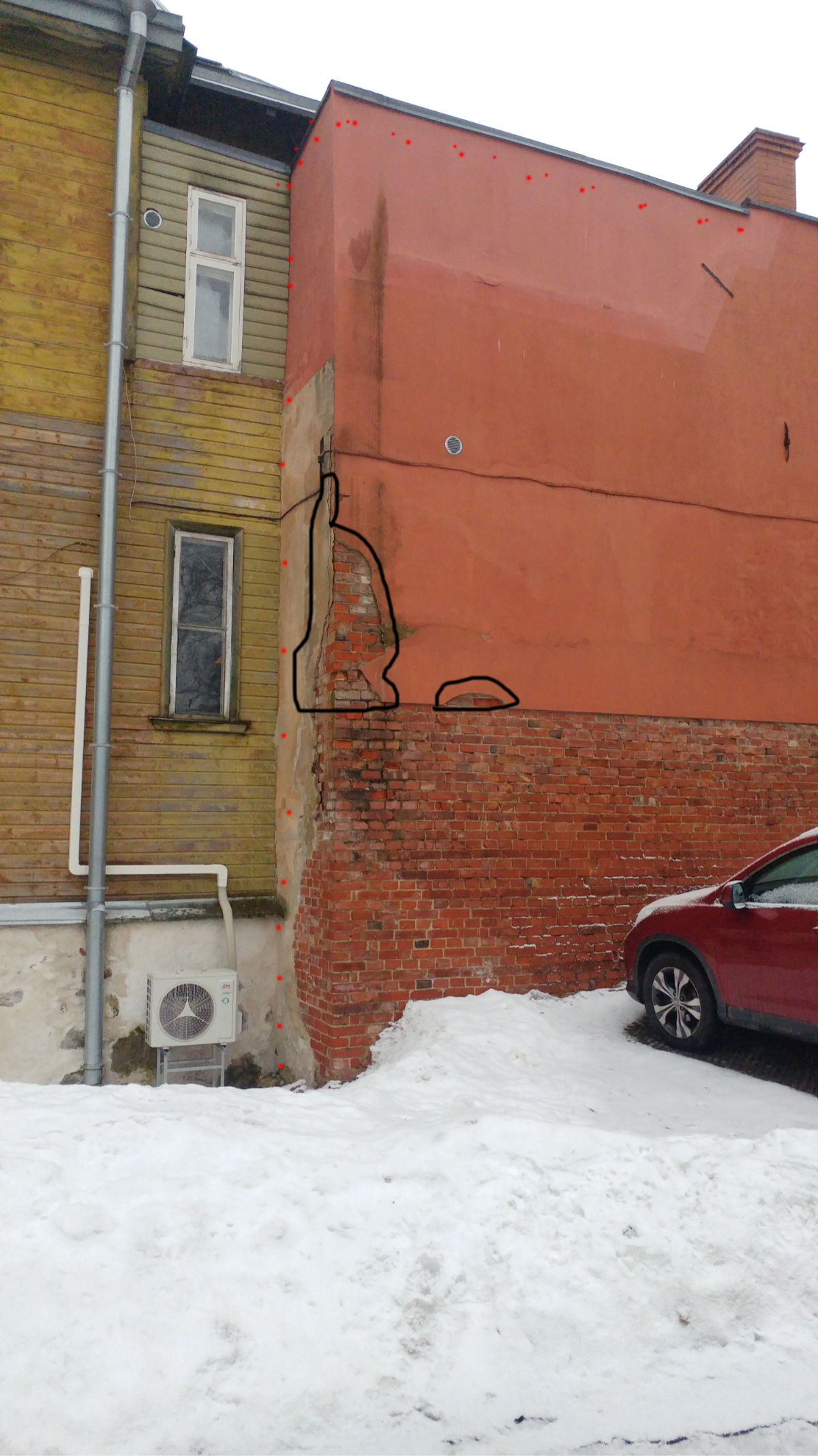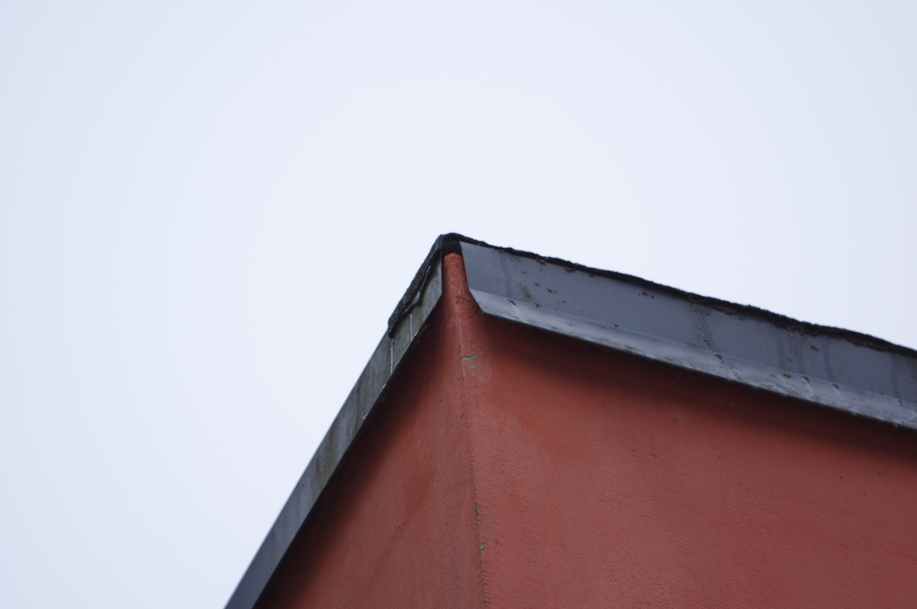 Vaja on lõpetada sademevee kahjustus maja nurgale. Selleks tuleks minu hinnangul (võib pakkuda oma hinnangut) paigaldada katuseserva ligikaudu 4 m vihmaveerenni ja tuua toru maja nurgast maapinnani. Lisatud pildil on näha veekahjustusega majanurk ja punaste punktidega olen tähistanud vihmaveerenni ja toru võimaliku kulgemise. Samuti tuleks taastada krohv kahjustunud kohal (krohv kuni pildil nähtava olemasoleva krohvi sirge piirini) ja värvida.