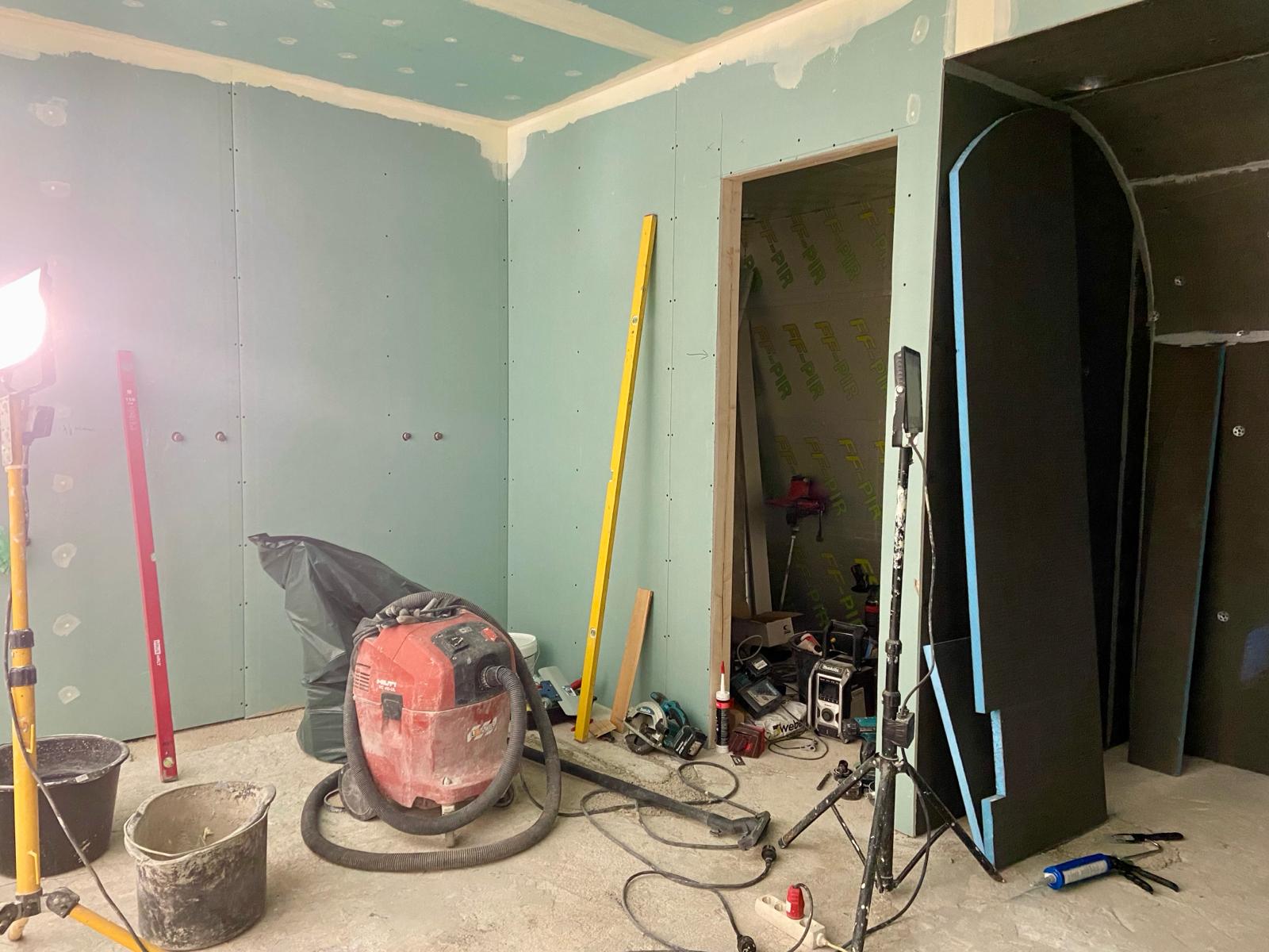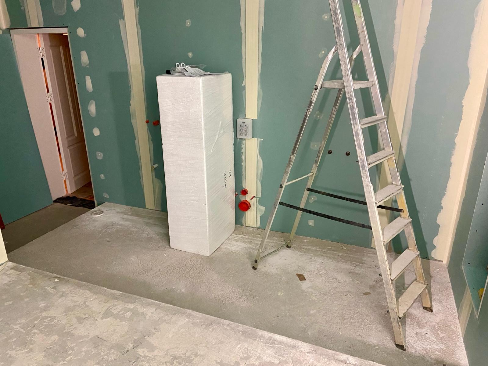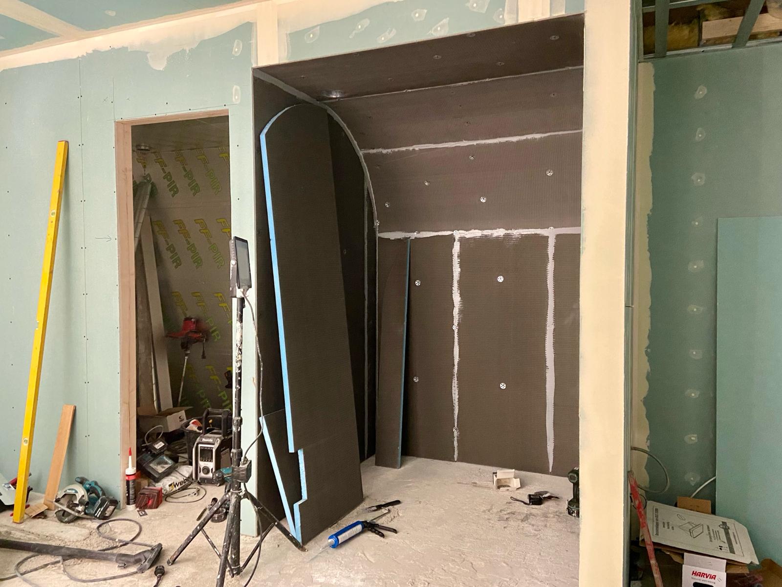 Pesuruumi plaatimine dušši, leiliruumi ja aurusaunaga. Tegemata veel tasandussegu, kalded ja hüdroisolatsioon.