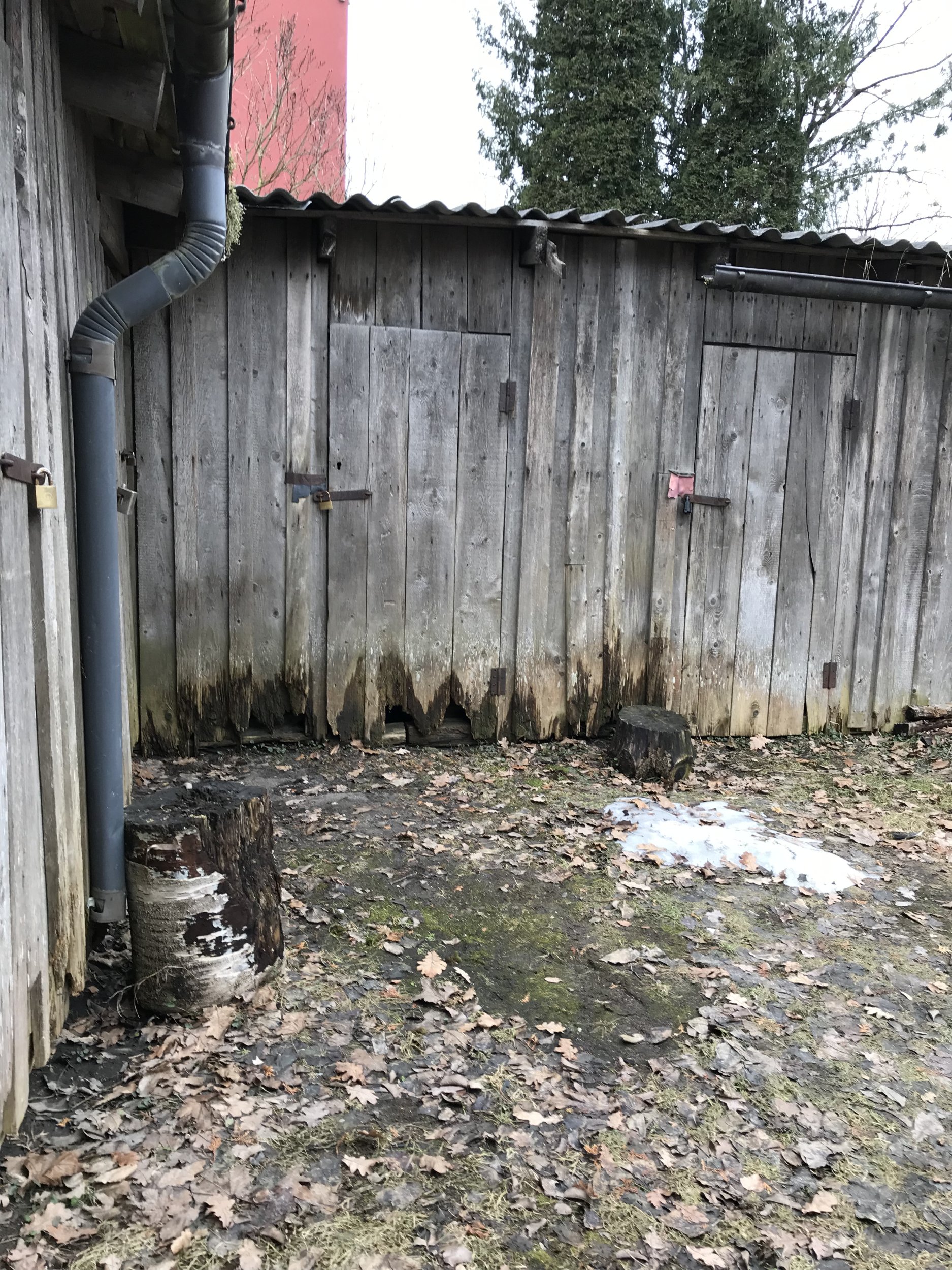 Vana lammutus, utiliseerimine. Võimalusel karkass säilitada. Killustiku põrand välja laudis Katusele plekk. Ühebdame kuuri, et tekiks U kujuline ühtne garaazi pokside kujund. |
