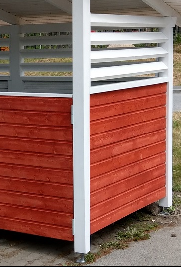 Pakkumise kirjeldus: Prügimaja värvitud ja postvundamendil , pvc katusega |