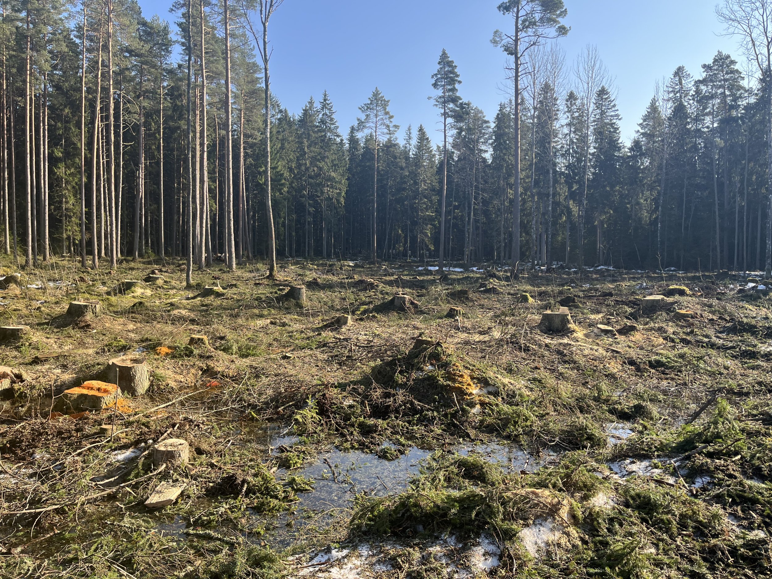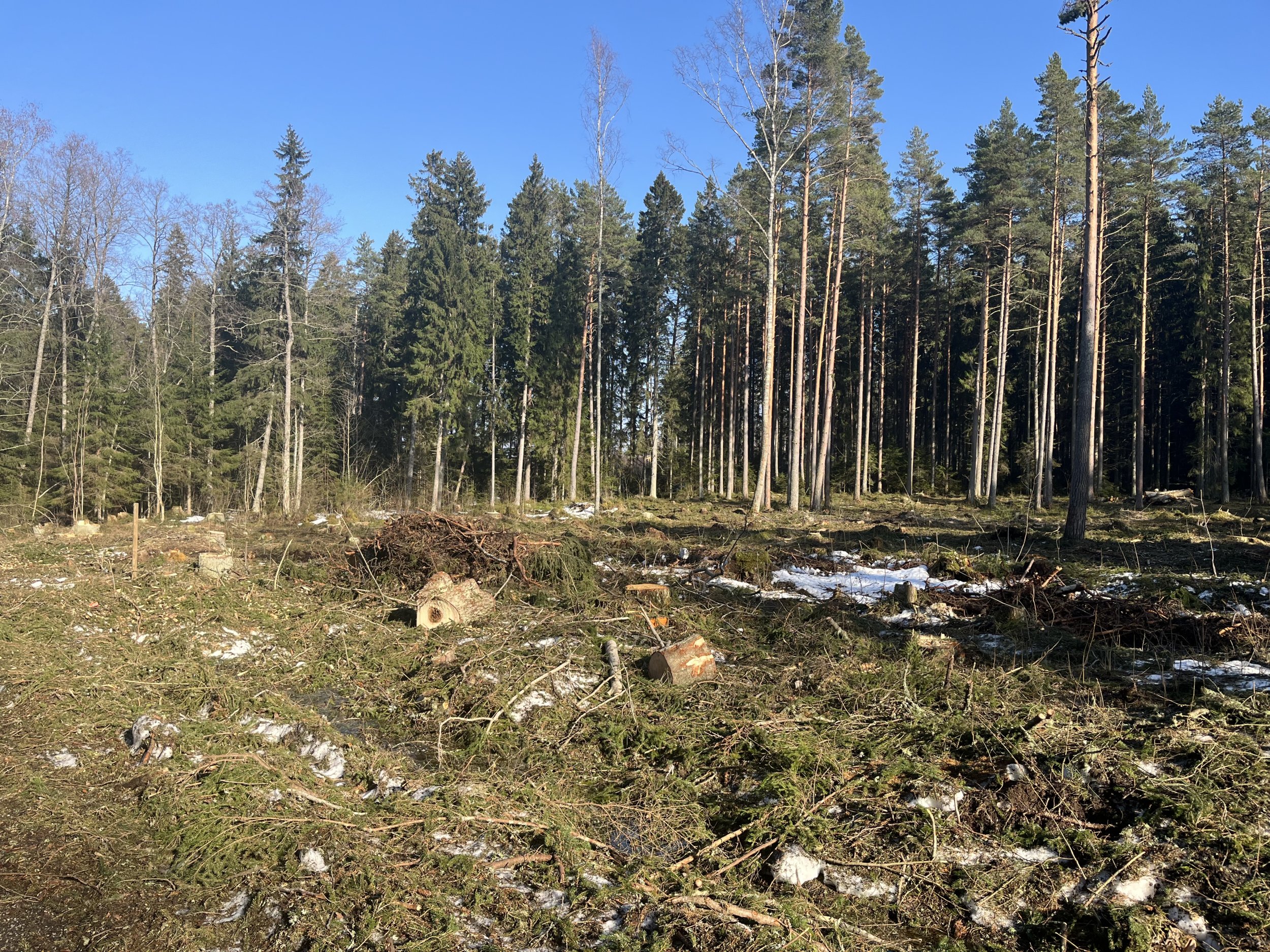 Tere, juurimine ekskavaatoriga, tasandamine ja kändude utiliiseerimine Tallinnasse.