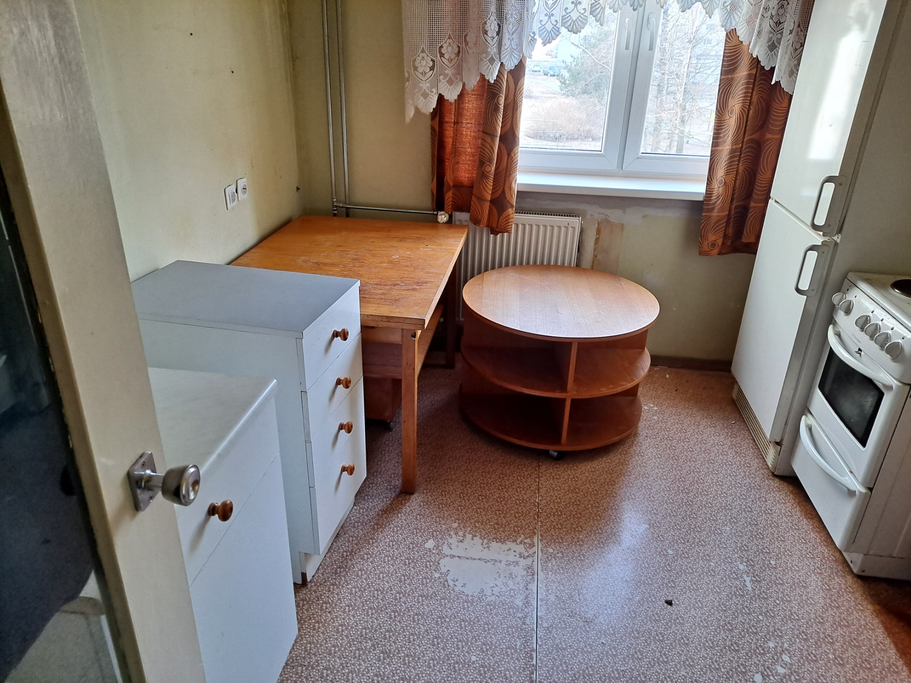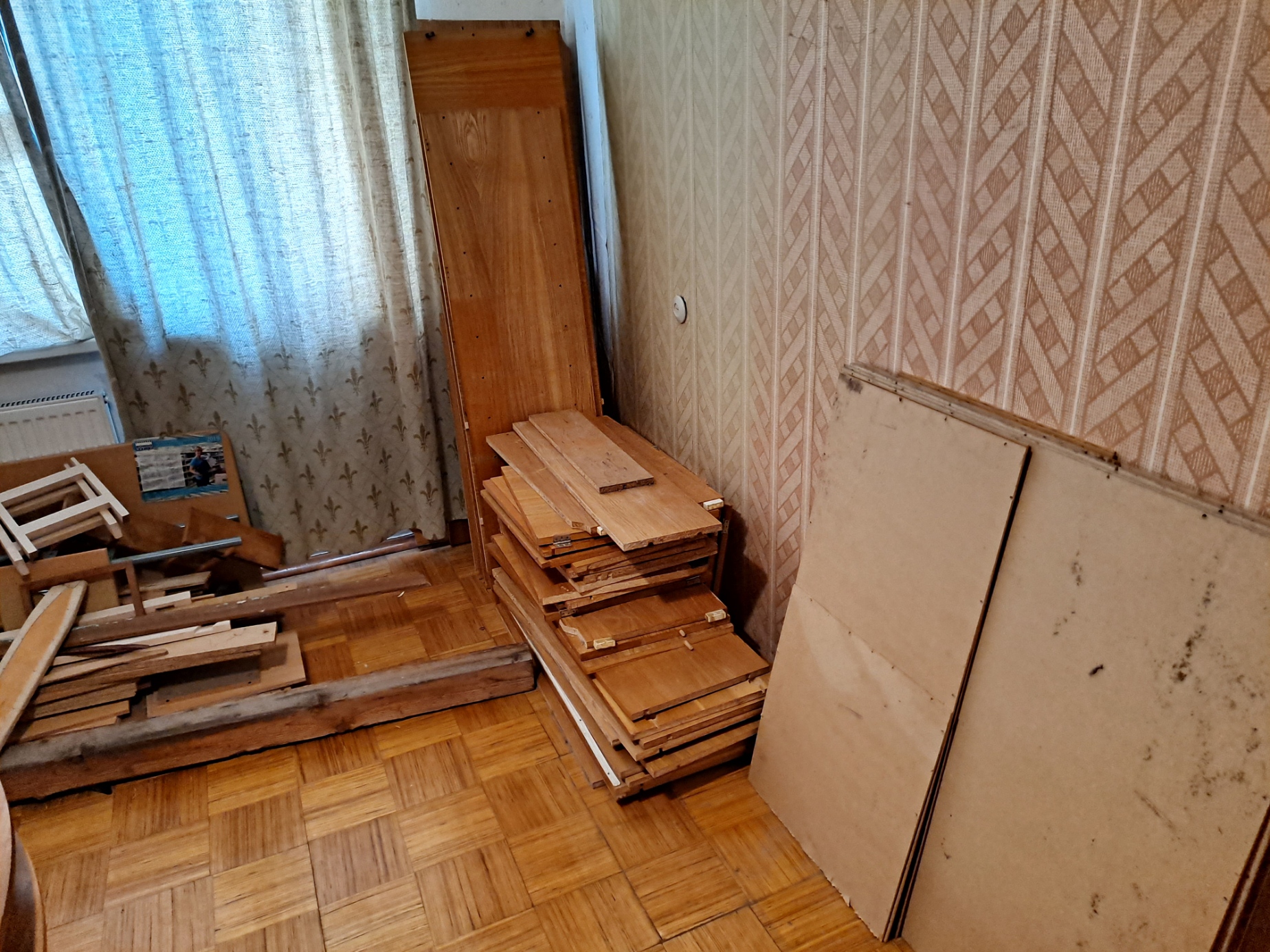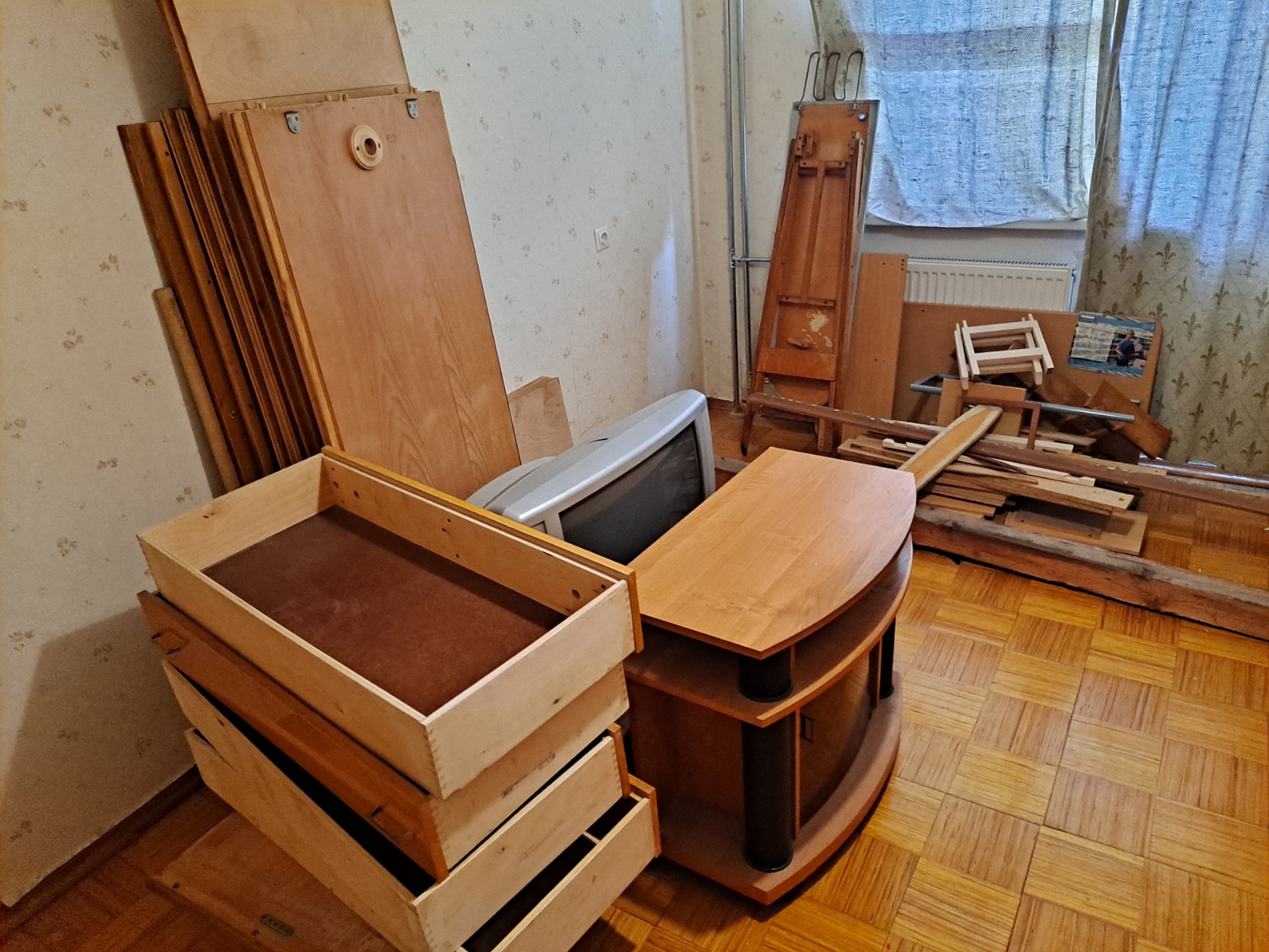 Vana mööbli väljaviimine ja utiliseerimine. Veneaegne sektsioonkapp, kolme poolega riidekapp ja paar arvutilauda on lahti võetud. Suur laud saab ka lahti võetud. Pesumasina, elektripliidi, kineskoobiga teleka ja lampraadio utiliseerimine.