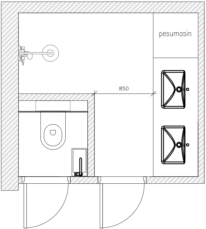 Paraku esimesena toodud skeemi põhjal tuleb tualetipoti äravooluühendus tuua läbi dušiala, kokku 270 kraadise pöördega, mis suurendab oluliselt ummistuste tõenäosust ning piki dušiala seina jooksev kanalikarbik ilus visuaal ka pole. Samuti tuleb arvestada kanalitoru horisontaalosale antava vajaliku kaldega, mis kergitab WC poti väljavooluava ning koos sellega põrandale toetuvat raami ja pott jääb püstakust liialt kaugele. Mis saab keset ruumi asuvate keskküttetorude küljes nukralt rippuvast radikast? Pakun skeemi, kus WC ja vannituba on lammutatust sügavamad, aga endiselt vaheseinaga, kuhu saab paigaldada juba uue plaatradika. Kuna eskiisil pole mõõtusid, on ebaselge, kas keskküttepüstaku saab paigaldada vaheseina sisse. Tualettruumis jagub ruumi nii raamil potile kui ka bideega valamule. Vannitoas pakuks uksest sisenedes taga vasakus nurgas, S-toru all eestlaetavat pesumasinat, taga vasakus nurgas ca 900x800 mõõtudega tõstetud plaatalusel dušinurk ning ruumi paremas seinas töötasapind kahe valamuga. Kõik muu vastavalt soovitud kirjeldusele. Tellijalt uksed, santehnilised paigaldised (v.a. S-toru ja radikas) ning keraamilised plaadid. Töö võimalik alates märtsi neljandast nädalast, töö kestus kuni 20 tööpäeva. Hanke võidu korral lisandub tööde maksumusele hange.ee teenustasu. Pakkumine on hinnanguline ning võib muutuda peale objektil ülevaatust 10% ulatuses. |