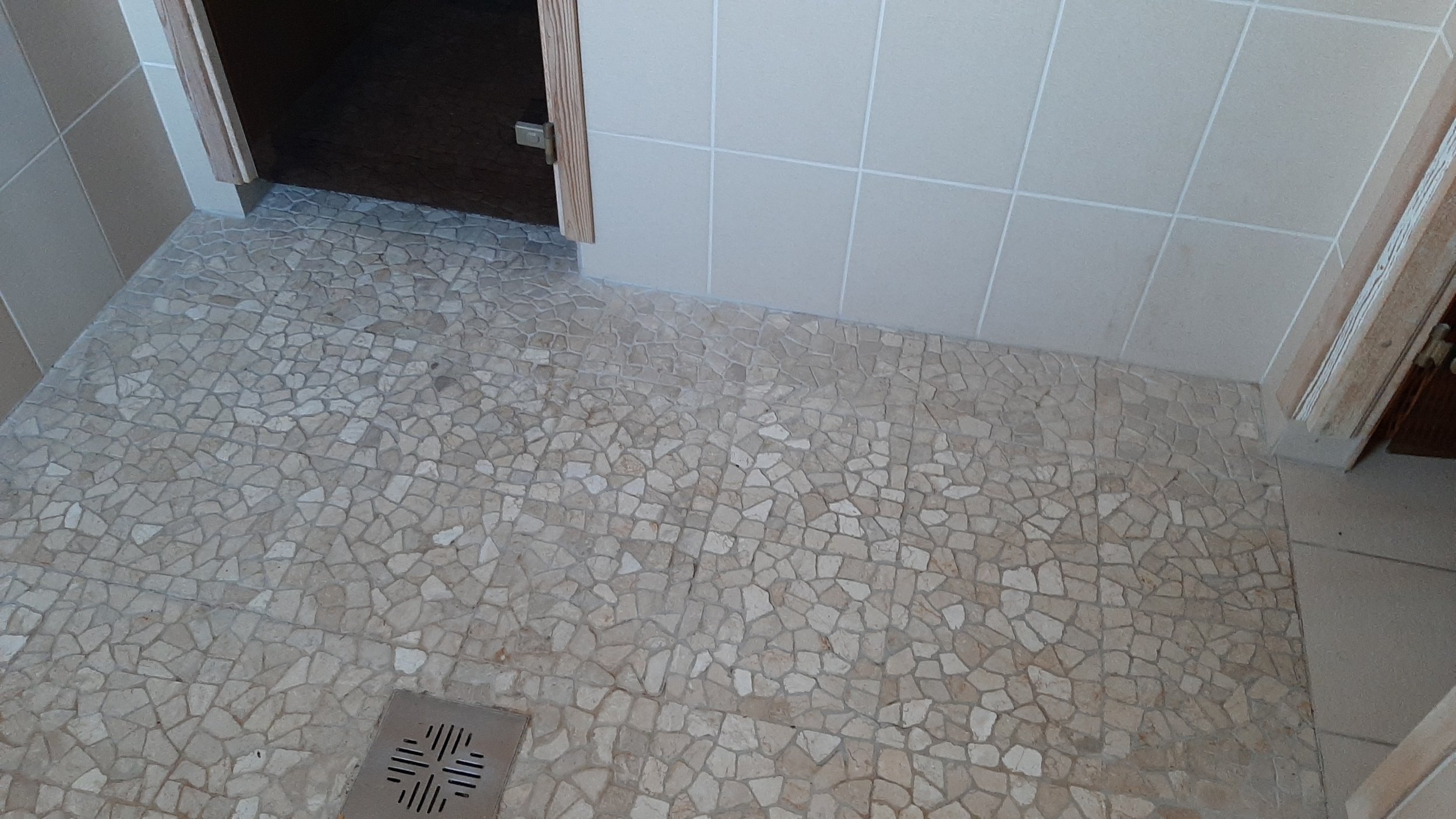 Tartus 2007.a. valminud eramu sauna pesuruumi põrandaplaatide eemaldus, plaatide aluse põranda tasandamine, hüdroisolatsioon ja uute plaatide panek. Põranda suurus: 210x208cm, põrandas 2 nelinurkset katteplaadiga äravooluava. Võimalik, et selleks vajalik ka seinaplaatide alumise rea eemaldus ja tagasipanek. Uued plaadid tellijal, muud tarbed ehitajalt.