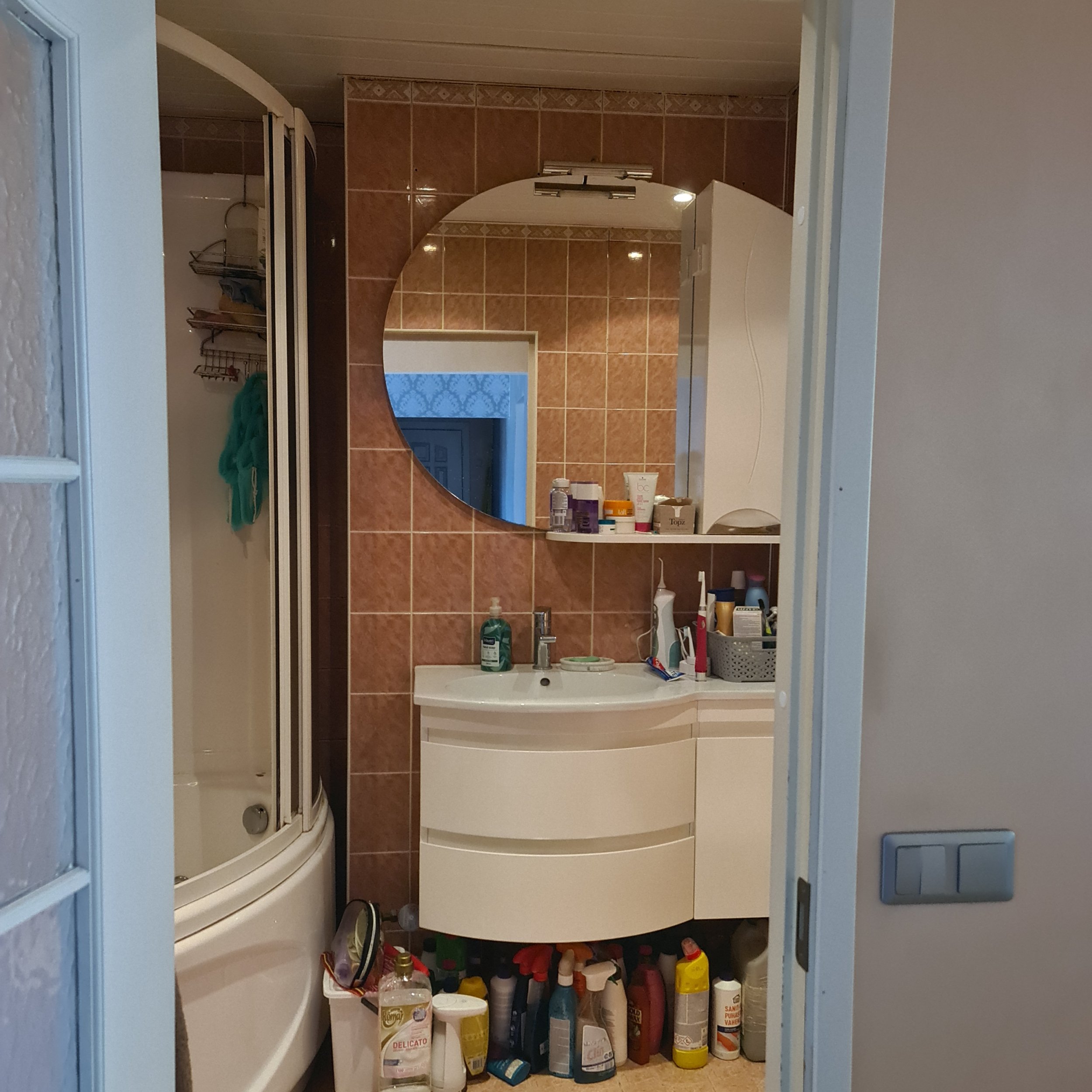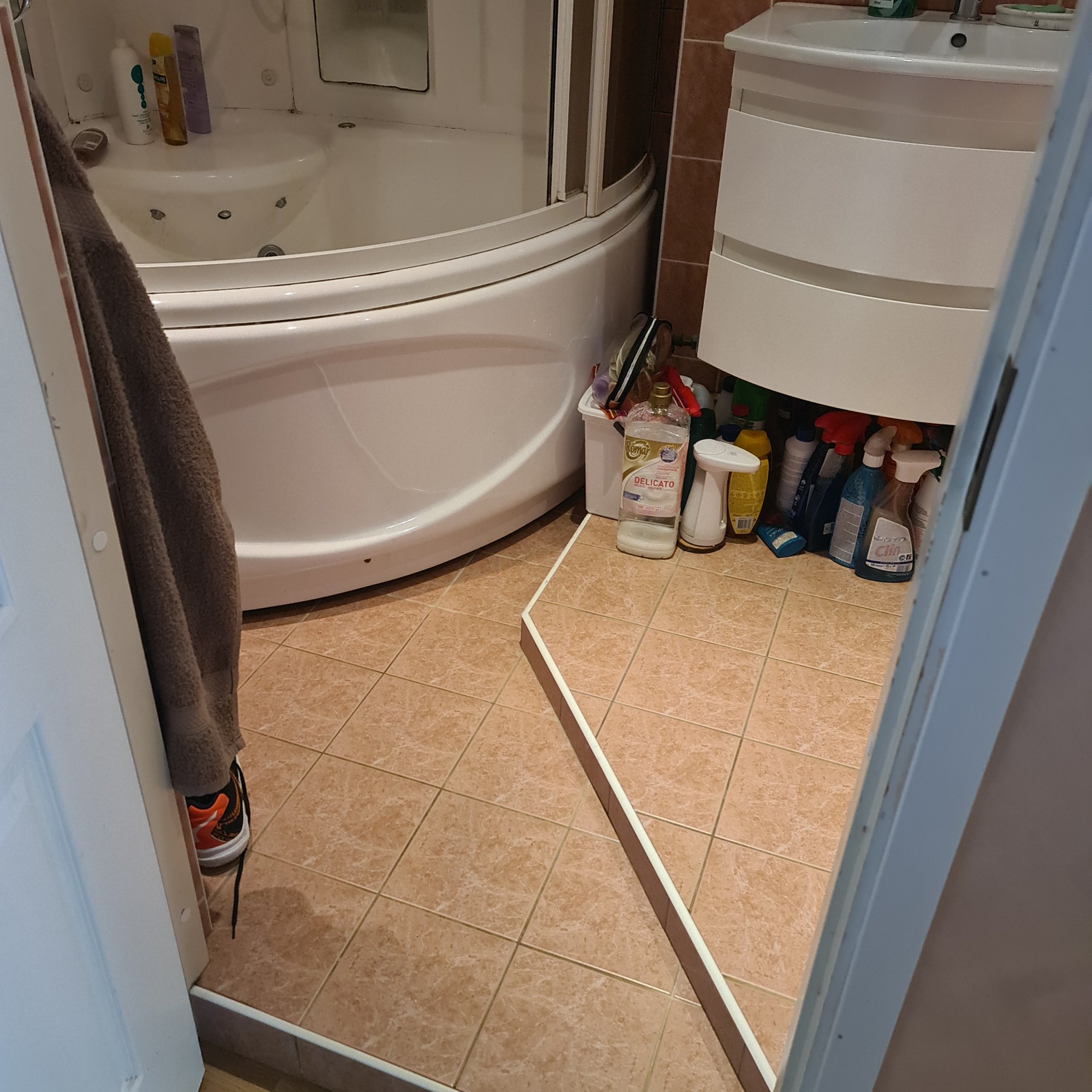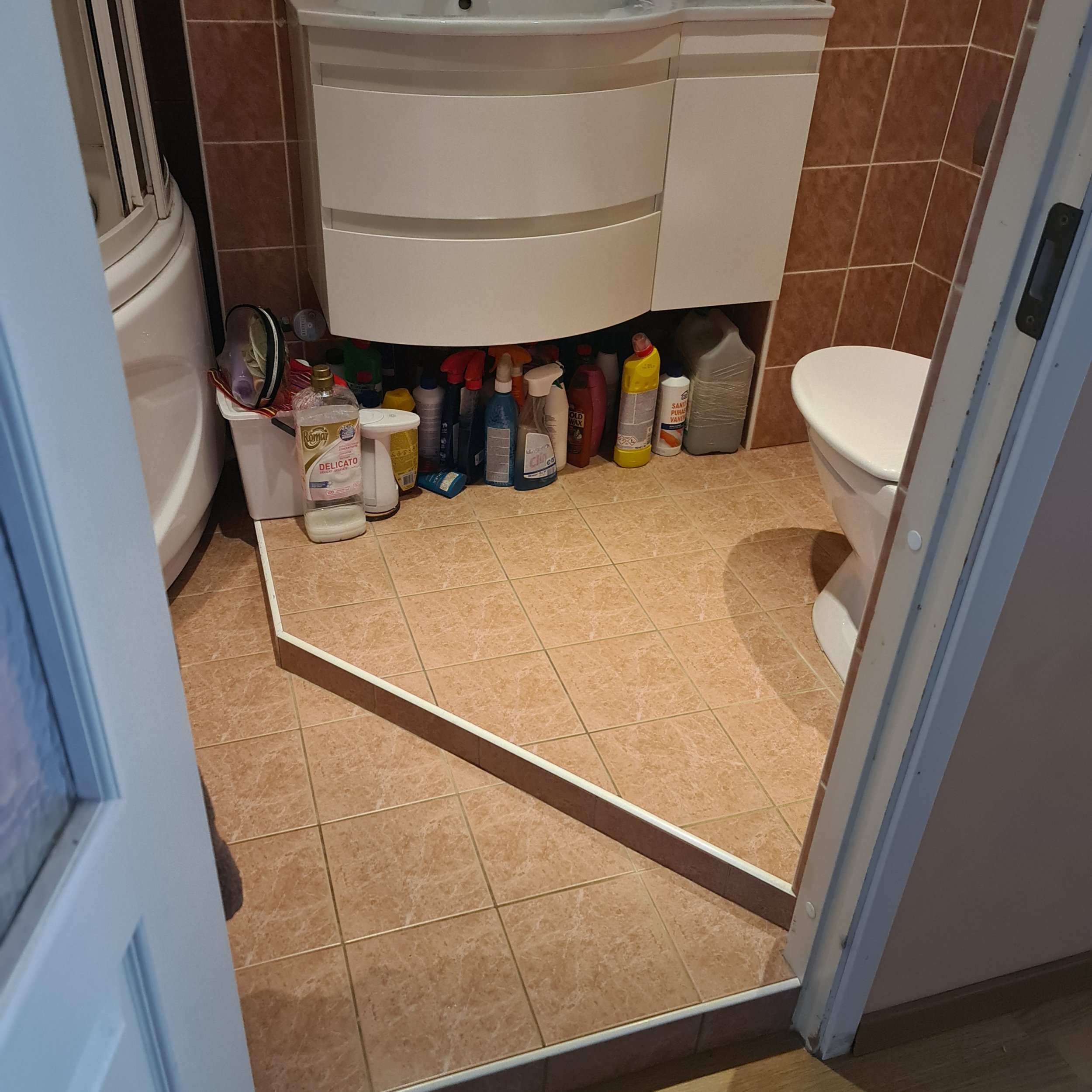Wc-ja vannituba kokkuehitatud. Põrandapinda 5,3ruutu ja plaaditud pinda ca 22ruutu. Põrand on astmega. Osalt seinad kips,st uue niiskuskindla kips aluseina paigaldus.