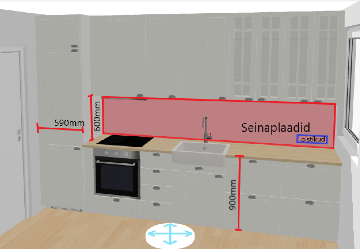 7) Köögi vanad seinaplaadid eemaldada ja uued seinaplaadid paigaldada uuest põrandast 900mm kõrguselt