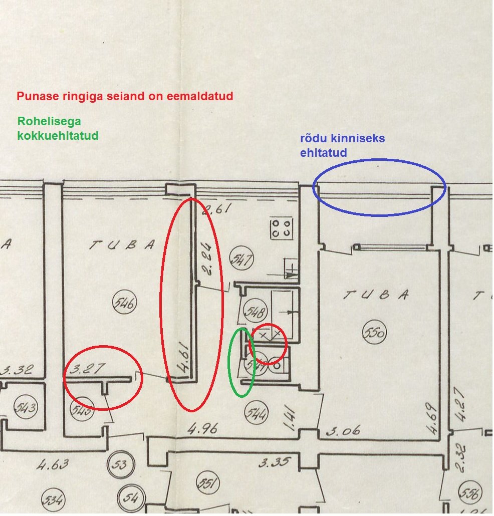 Korteri ostsin 2009. Eelnevalt olid juba osad seinad eemaldatud. Köök avatuks tehtud jne. Nüüd oleks vaja et EHR-is oleks kõik õige.
