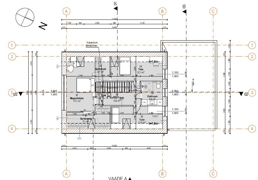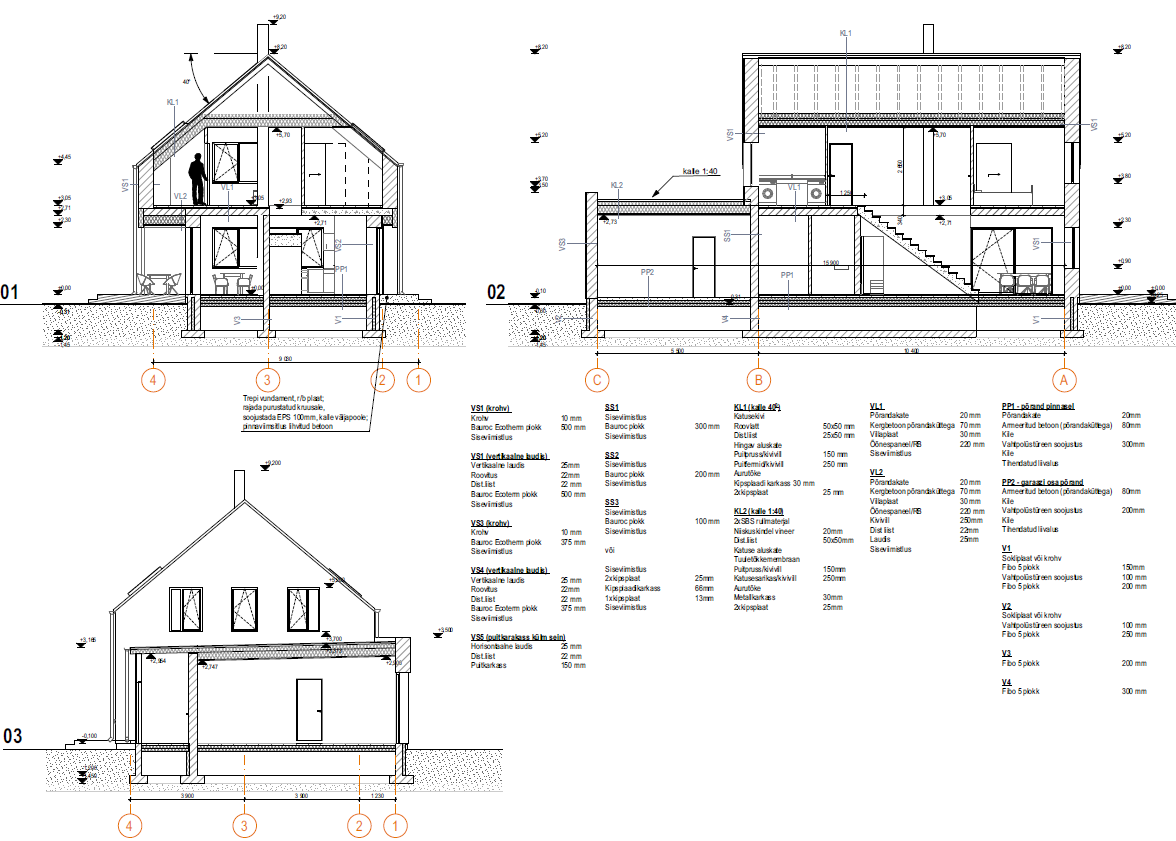 Ehitamise tarbeks vaja konstruktiivselt projekteerida 1,5 krs eramu põhisõlmed alates vundamendi lõigetest.