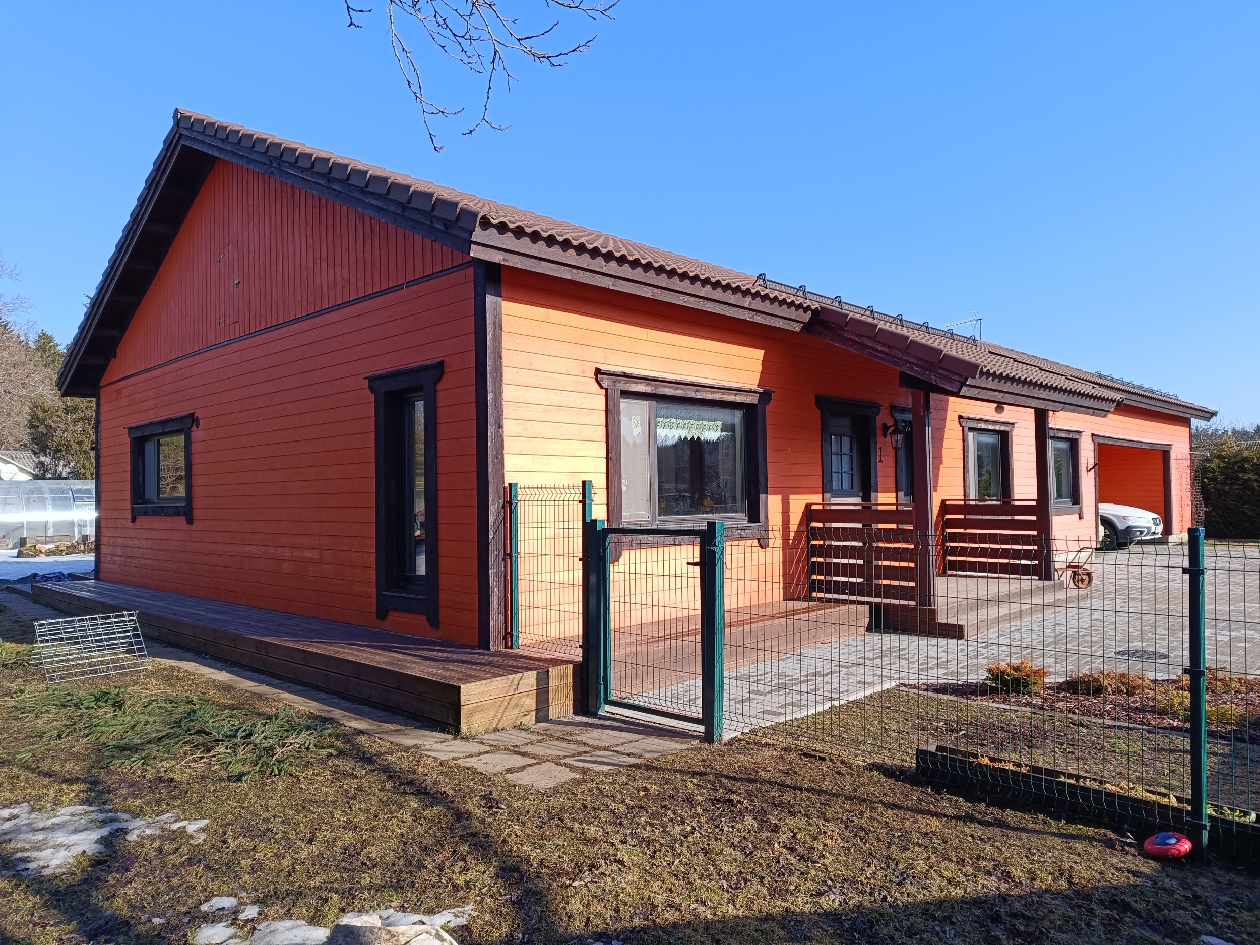 uut värvi tahavad pleekinud otsaseinad ja fassaad, auto varjualune- ei.