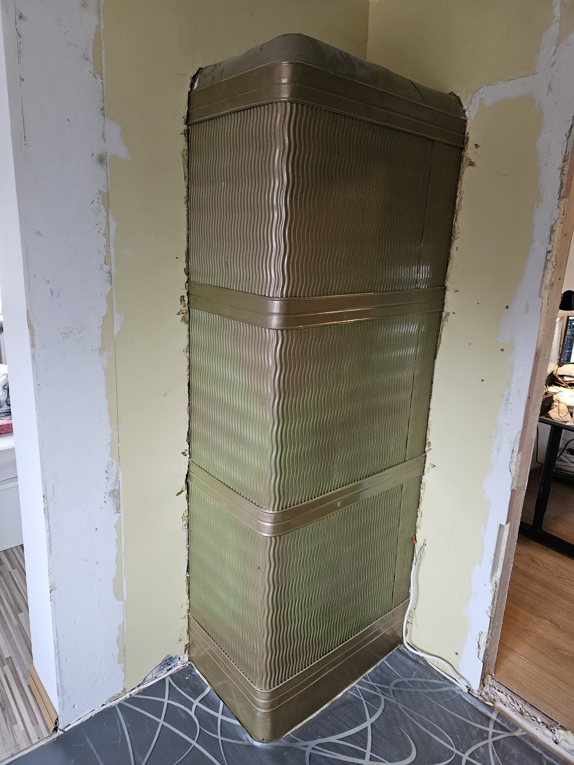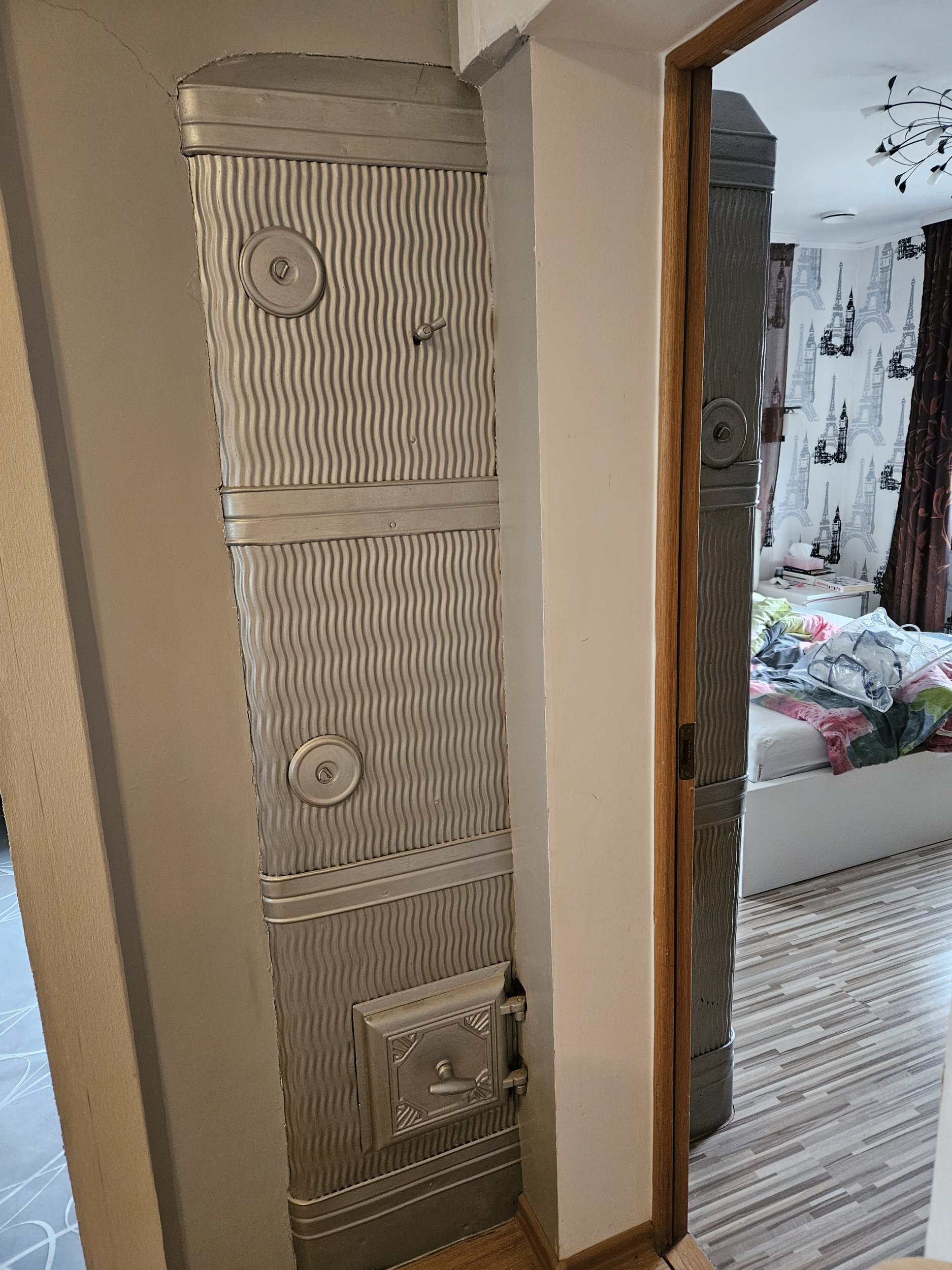 Likvideerida ja utiliseerida piltidel olev ahi. Ahi asub eramajas teisel korrusel ja kivid tuleb tassida puittrepist alla. Korstna lõõriaugud tuleks sulgeda, et saaks esimese korruse ahju edasi kütta.