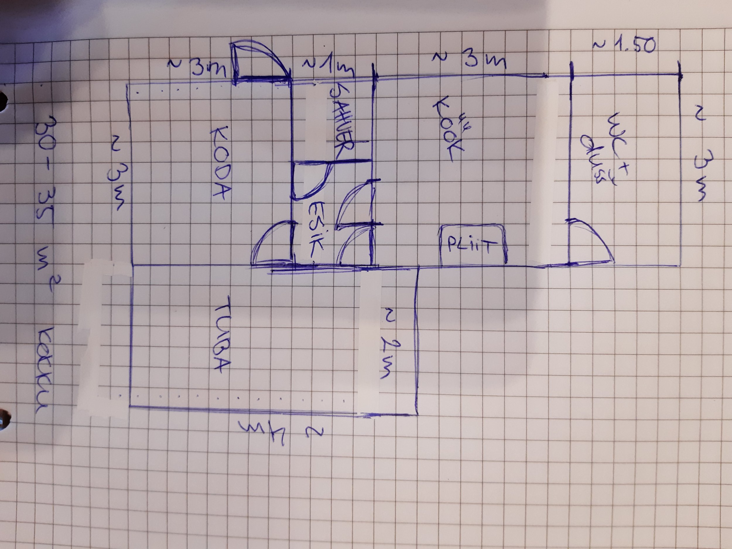 Põrandapinda vahemikus 30-35 ruutmeerit.