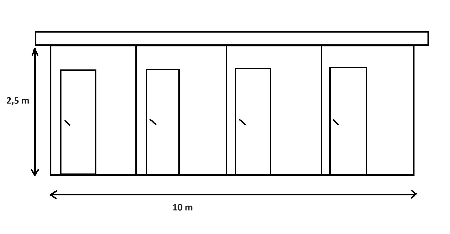 Soojustamata moodulhoone lamekatusega mõõtudega 4000mm x 9870mm Moodulseinad terasmoodulid kuumtsingitud Siseseinad värvitud valgeks Välisfassaad struktuurkrohv ( värvivalik ) Vaheseinad 3tk Välisuksed Wiśniowski 4tk 1000mm x 2000mm ( laia paneeliga ) Aluspinna ehitus: Väljakaeve ca 40-50cm Tagasitäide liiv 20cm Killustiku alus 20cm Betoonplaadid mõõduga 2000mm x 2000mm x 160mm 10tk Betoonplaatide ja hoone paigaldus. |
