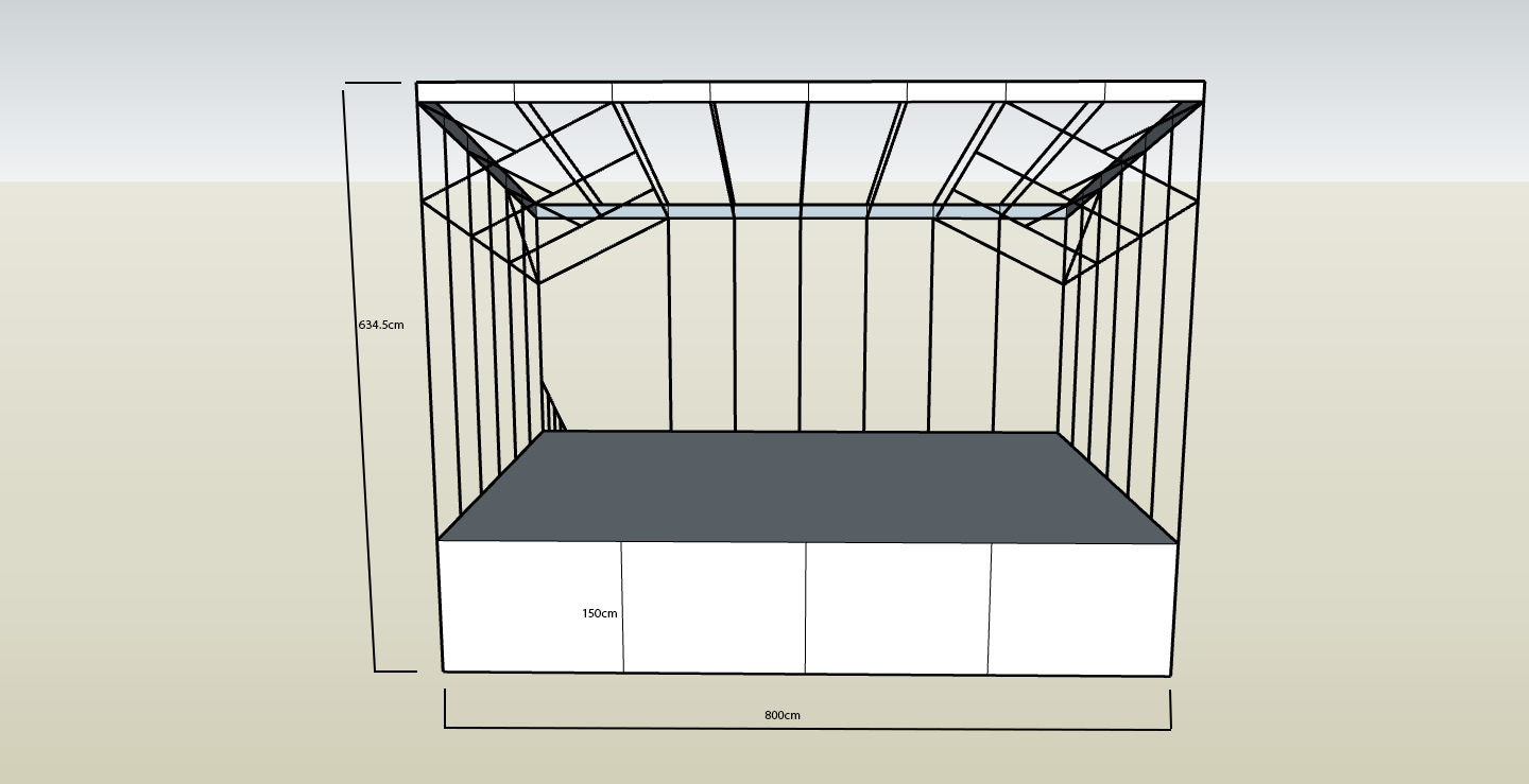 Rajatise mõõdud on (P x L x K): 8 x 6 x 6,5 m. Lava asub 1,5m kõrgusel maapinnast.