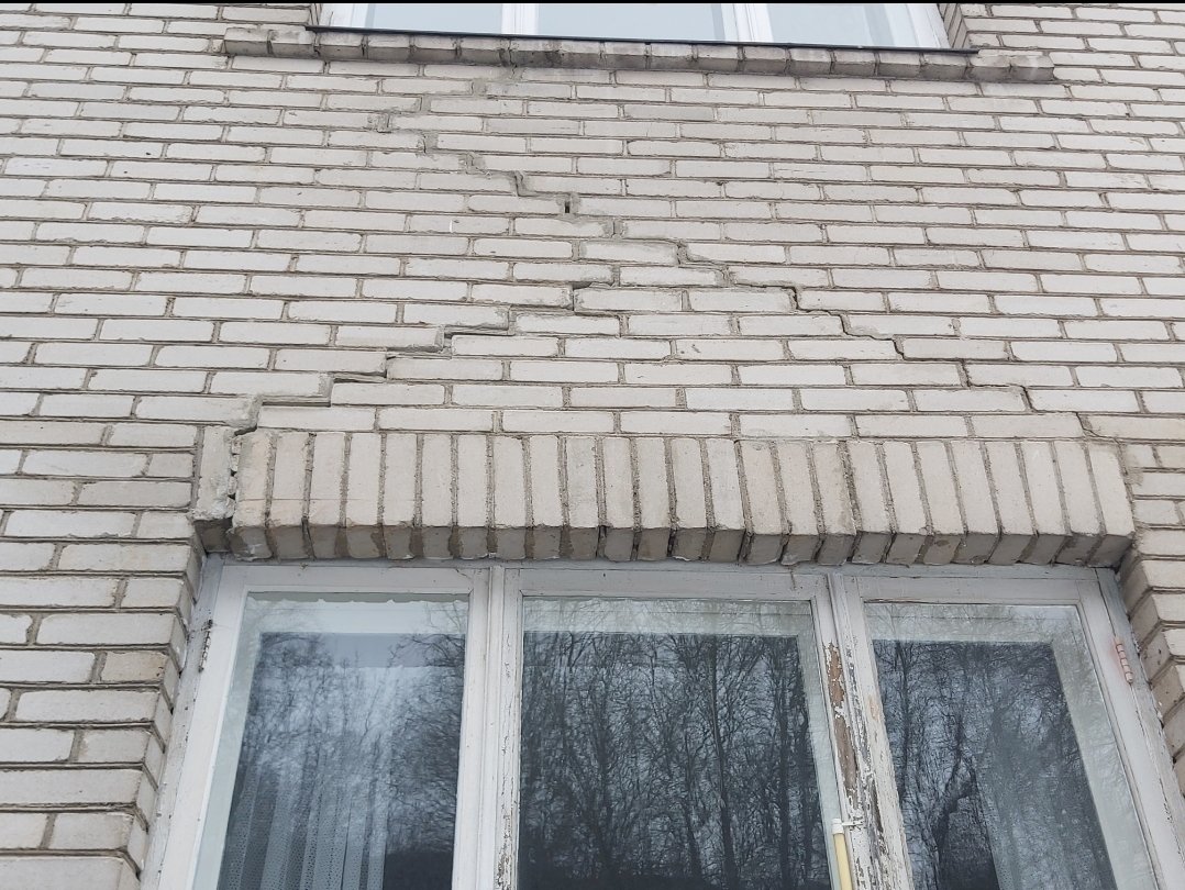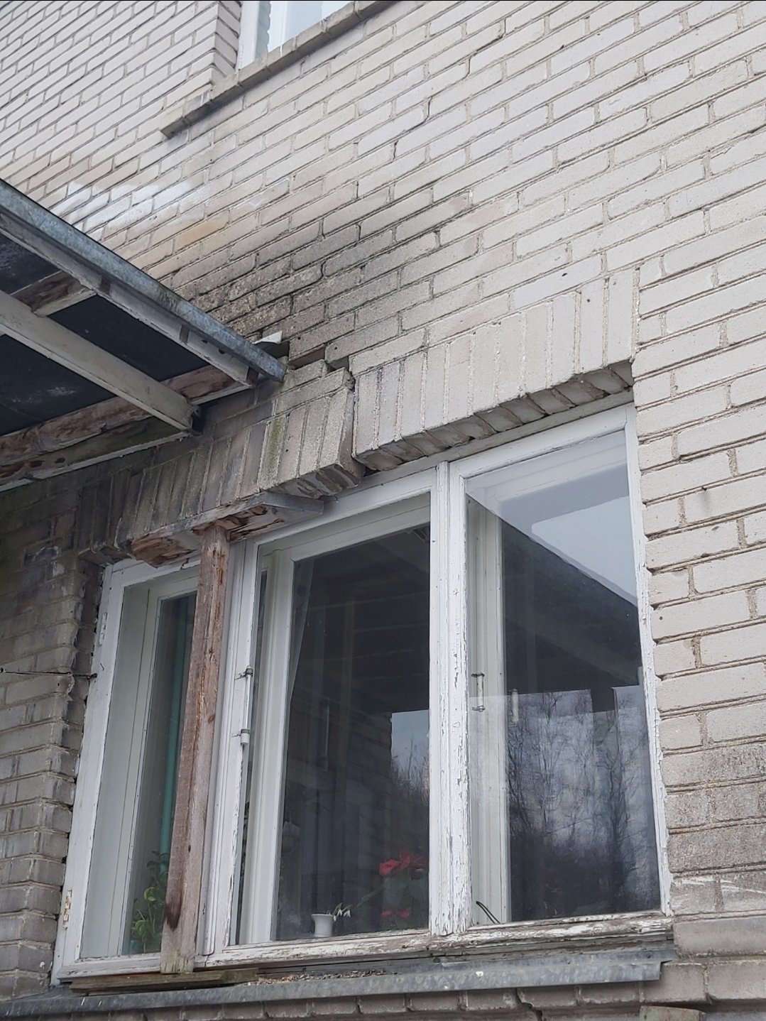 Maja fassaadi silikaattellised on akna kohalt alla vajunud. Oleks vaja nad tagasi paika fikseerida või vajadusel uuesti laduda ning julgestada.
