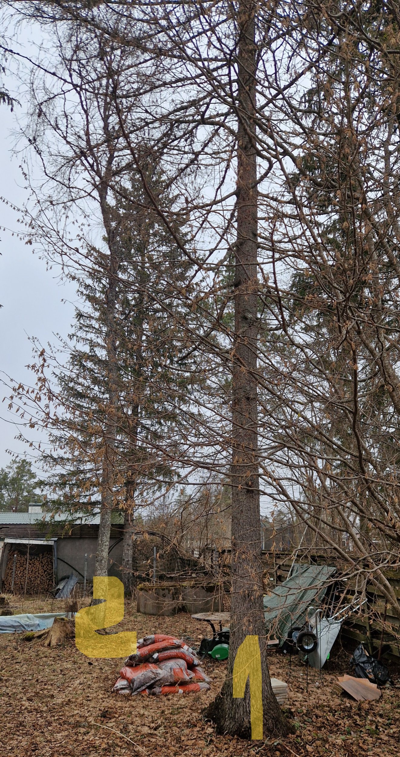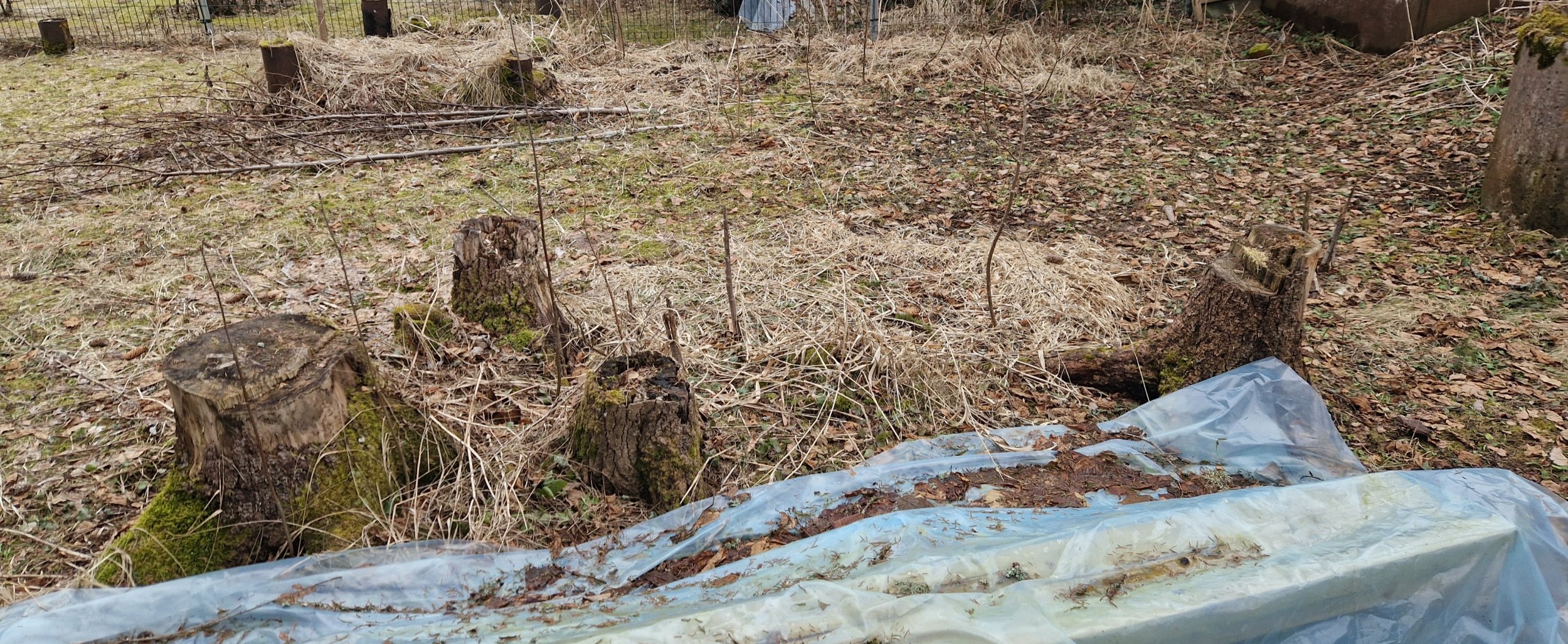 1. langetada kaks keskmist puud (pilt 1) ja 3 väikest (pilt 2) ja nende kändude freesimist ca 10cm sügavusele.