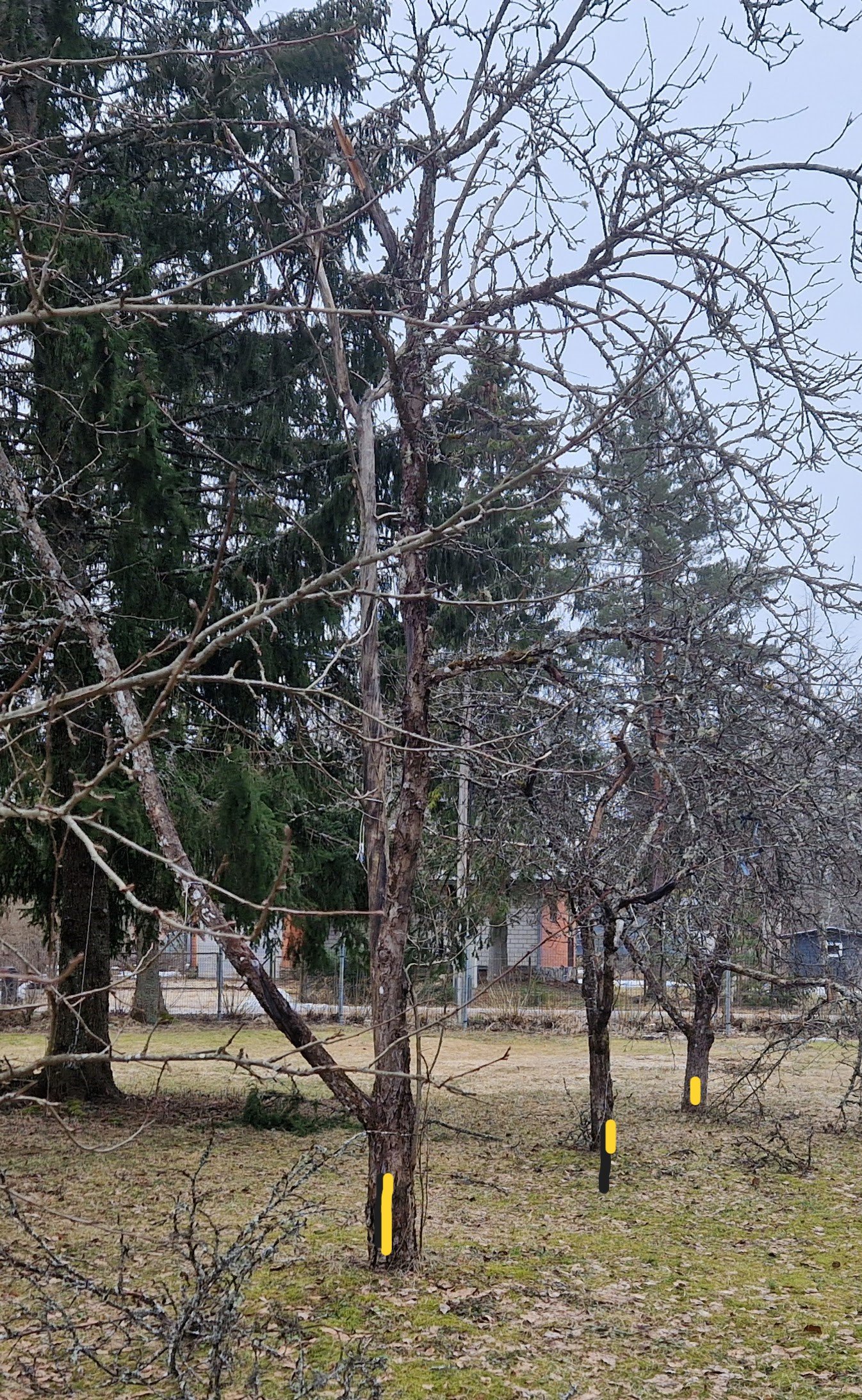 a. Keskmised puud on umbes 3 m hoonest, väiksed on kaugemal