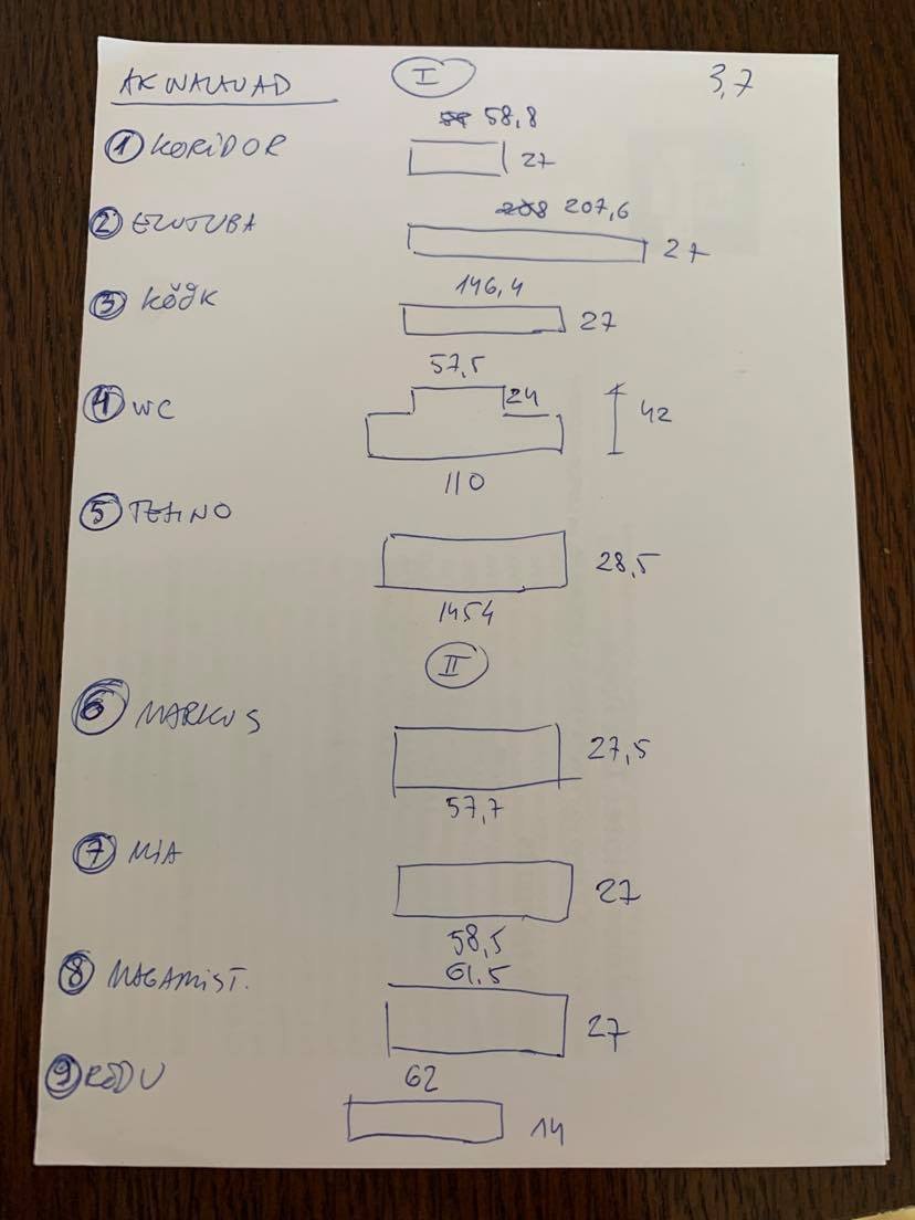 Mõõdud pildina manuses, samuti pilt numbriga igast aknast.