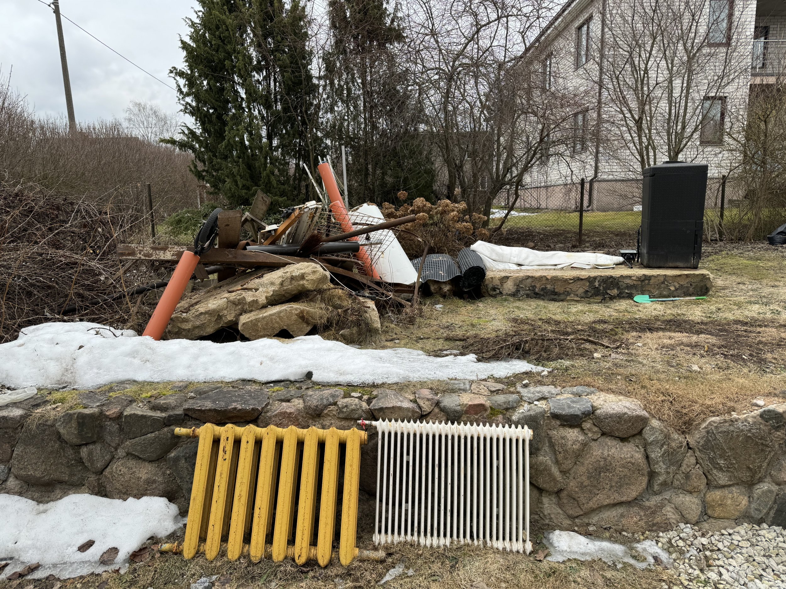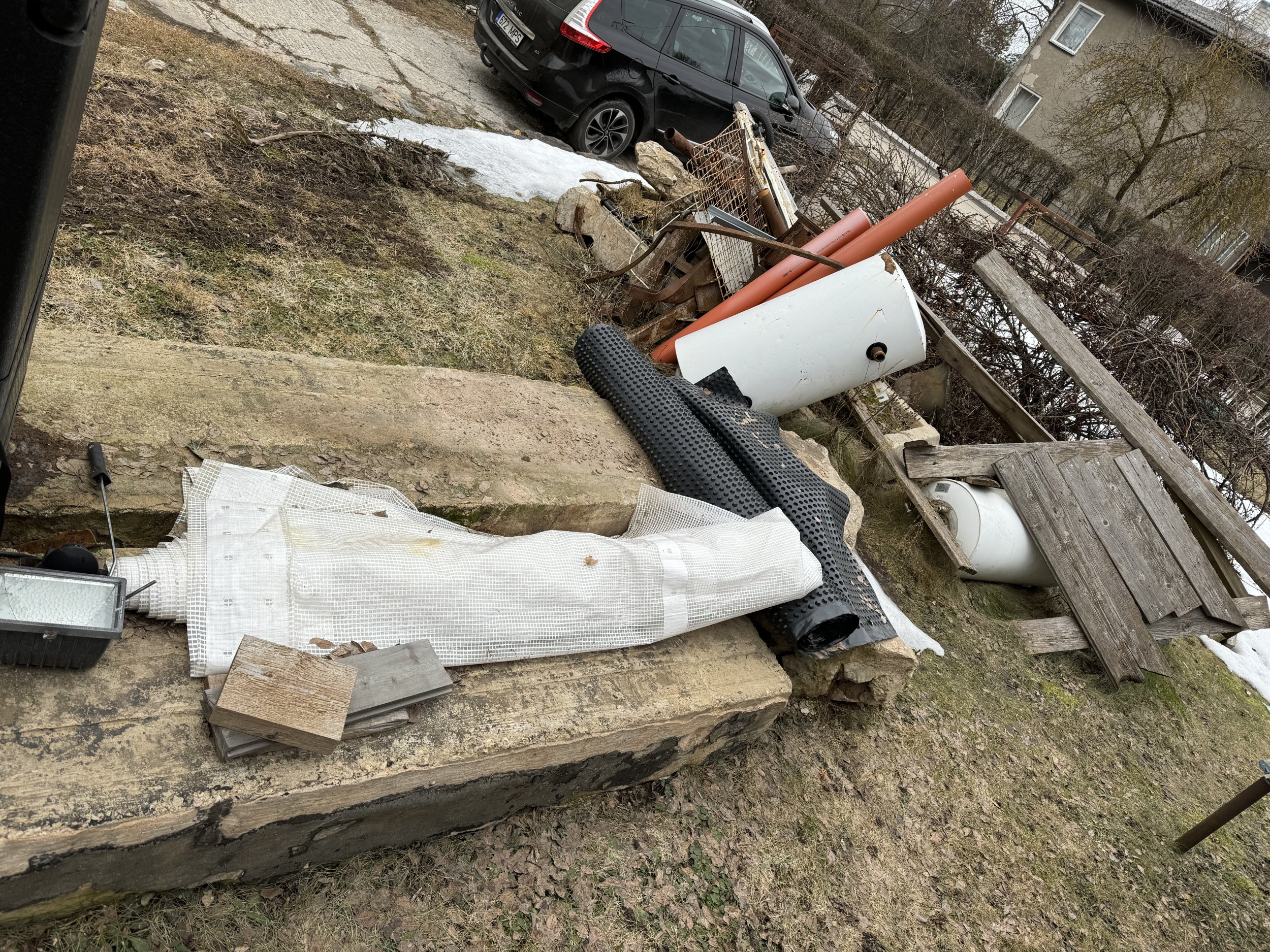 Kahes hunnikus on erinevat kraami, sh metalli, veidi haljastusjäätmeid jms. Kõige keerukam ilmselt kahe betoonelemendi liigutamine, aga neist tahan kindlasti lahti saada.