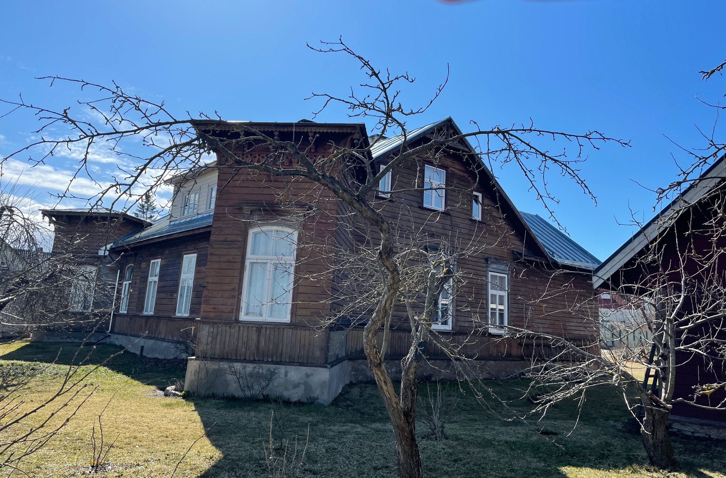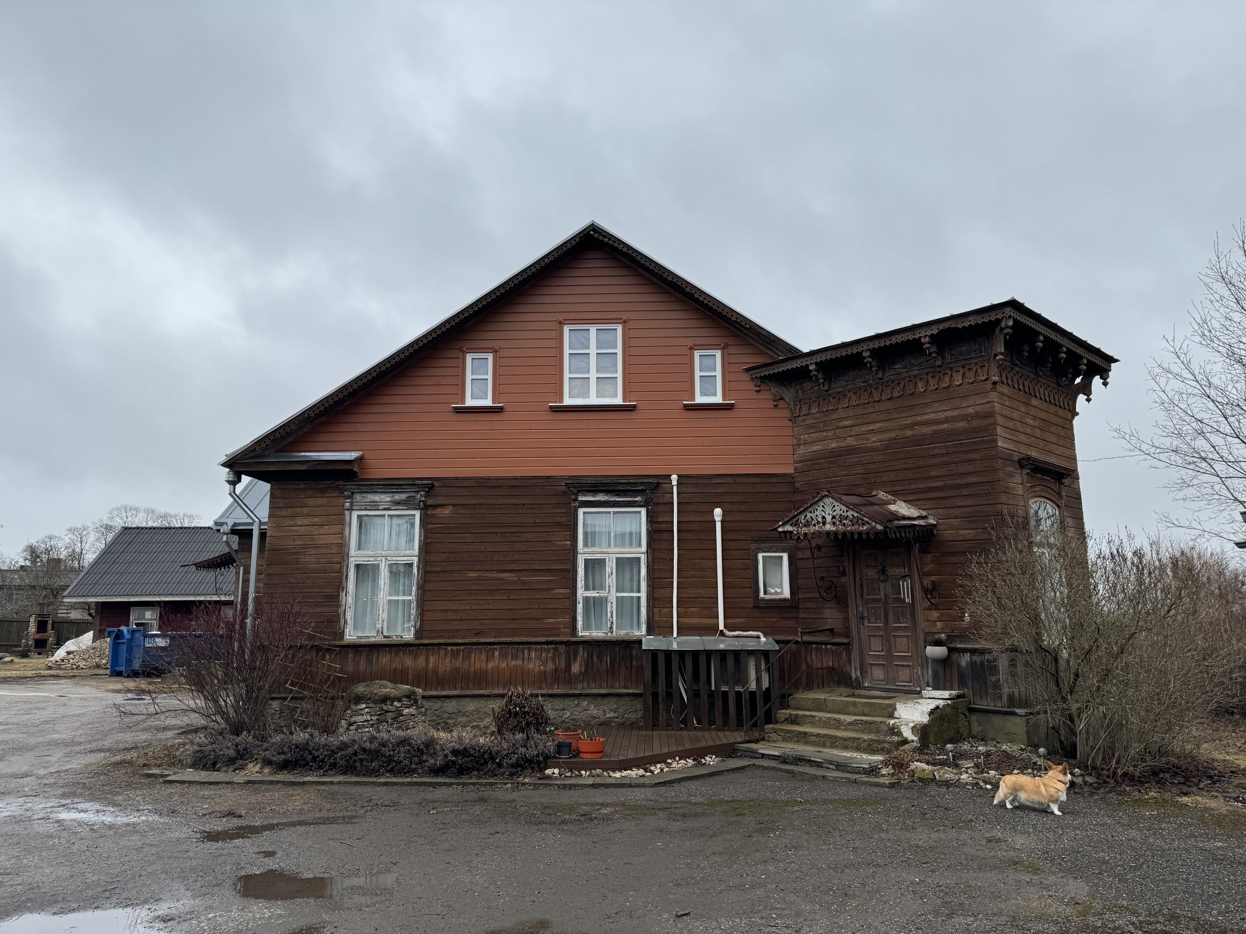 8. Fassaadi värvimine. Värvida tuleb kahes toonis – seinalaudis üht tooni ning puitpits ja nikerdused teist tooni.