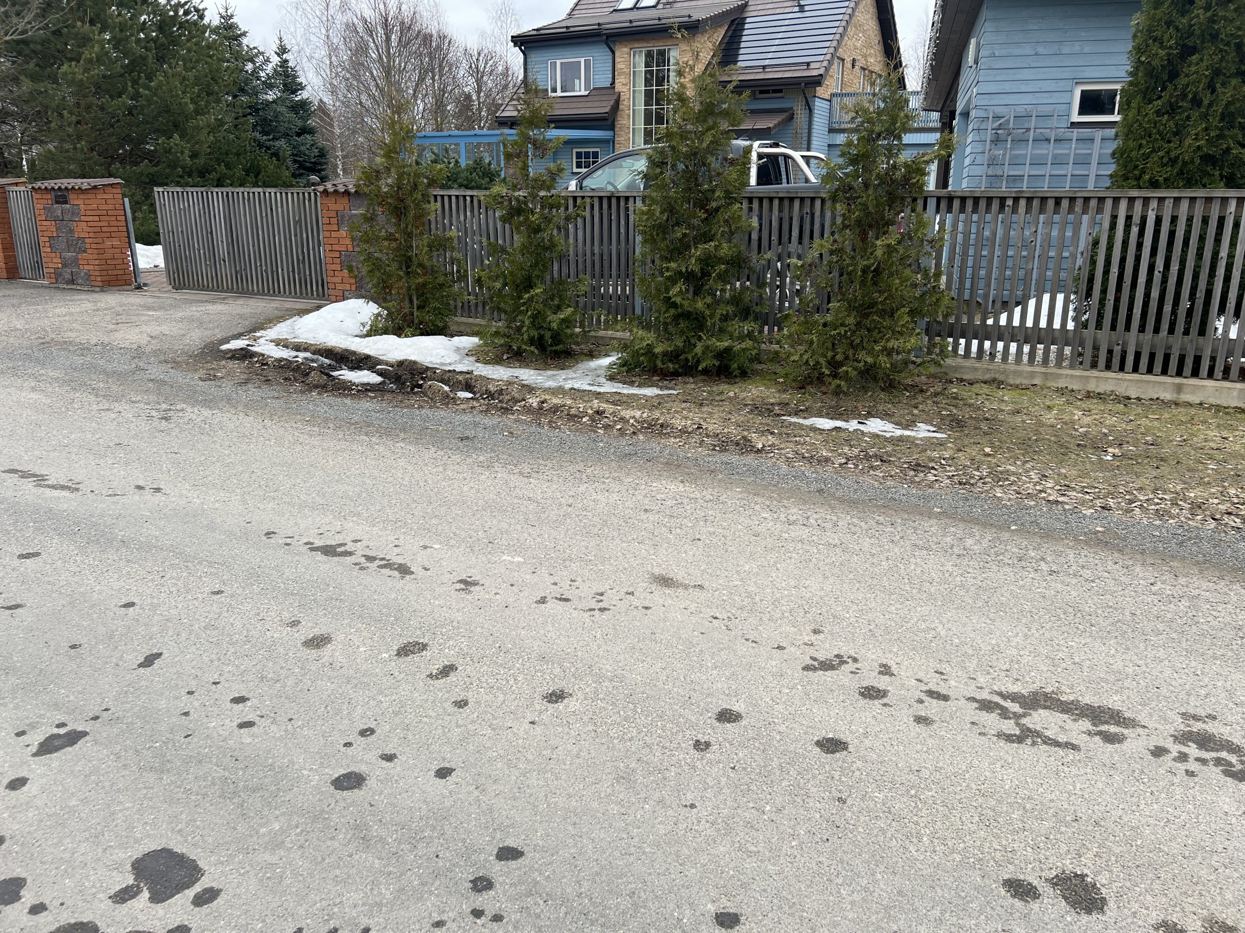 Olemasoleva piirdeaia lammutamine betoonvundamendini, nelikanttorust sissebetoneeritud aiapostid lõigatakse maha betooni pinnalt. Auto- ja jalgvärava raamilt aialippide eemaldamine. Betoonvundamendi korrastamine (vanade postiaukude täitmine jootebetooniga). Uute kuumtsingitud ja värvitud tallalappidega aiapostide paigaldamine betoonvundamendile. Uue piirdeaia ehitus sarnane olemasolevale, sh. aialippide paigaldus jalg- ja autoväravale, kuid uued aialipid 45 x 70 mm olemasolevate 45 x 45 mm asemel. Demonteeritud materiali utiliseerimine. Piirdeaed 15,2 x 1,2 m, jalgvärav 0,96 m, autovärav 4 m. Piirdeaia postid ja ülemine kattelaud helehallid, lipid tumedamad sinakashallid. Aiapostid ja -lipid ning muu puitmaterjal töö tellijalt, värv, kinnitusvahendid ja muu abimaterjal töö teostajalt.