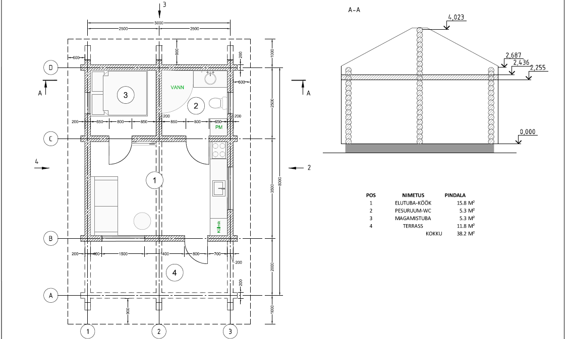 Jooniseid: vundamendi plaani, korruste plaane, katuseplaan, lõige, vaateid, avatäidete spetsifikatsiooni ja asendiplaani koostamist. 3D mudel (pildid, IFC) Seletuskirja Pakkumine ei sisalda: Projekti sisestamine ehitusregistrisse, kooskõlastamised, asjaajamine. Projektiga ja projekteerimisega seotud kõik kooskõlastustasud ja riigilõivud (nt. projekteerimistingimuste menetlustasud, ehitusloa taotlusega seotud riigilõivud, võrguvaldajate trassidega seotud kooskõlastustasud ja liitumistasud ja projekti kooskõlastustasud, jne.) Hinnapakkumine ei sisalda Topo-geodeetiliste, ehitusgeoloogiliste, dendroloogiliste uuringute koostamist, ega nende maksumust. Hinnapakkumine ei sisalda tehnosüsteeme/eriosasid Asendiplaani tegemiseks peab olema kliendi poolt geoalus (geodeetiline mõõdistamine), mis on maksimaalselt 2 aastat vana. Arveldamine: 50 % ettemaks enne projekteerimistööde alustamist ja 50 % tasuda siis, kui projekti dokumentatsioon on valmis. |