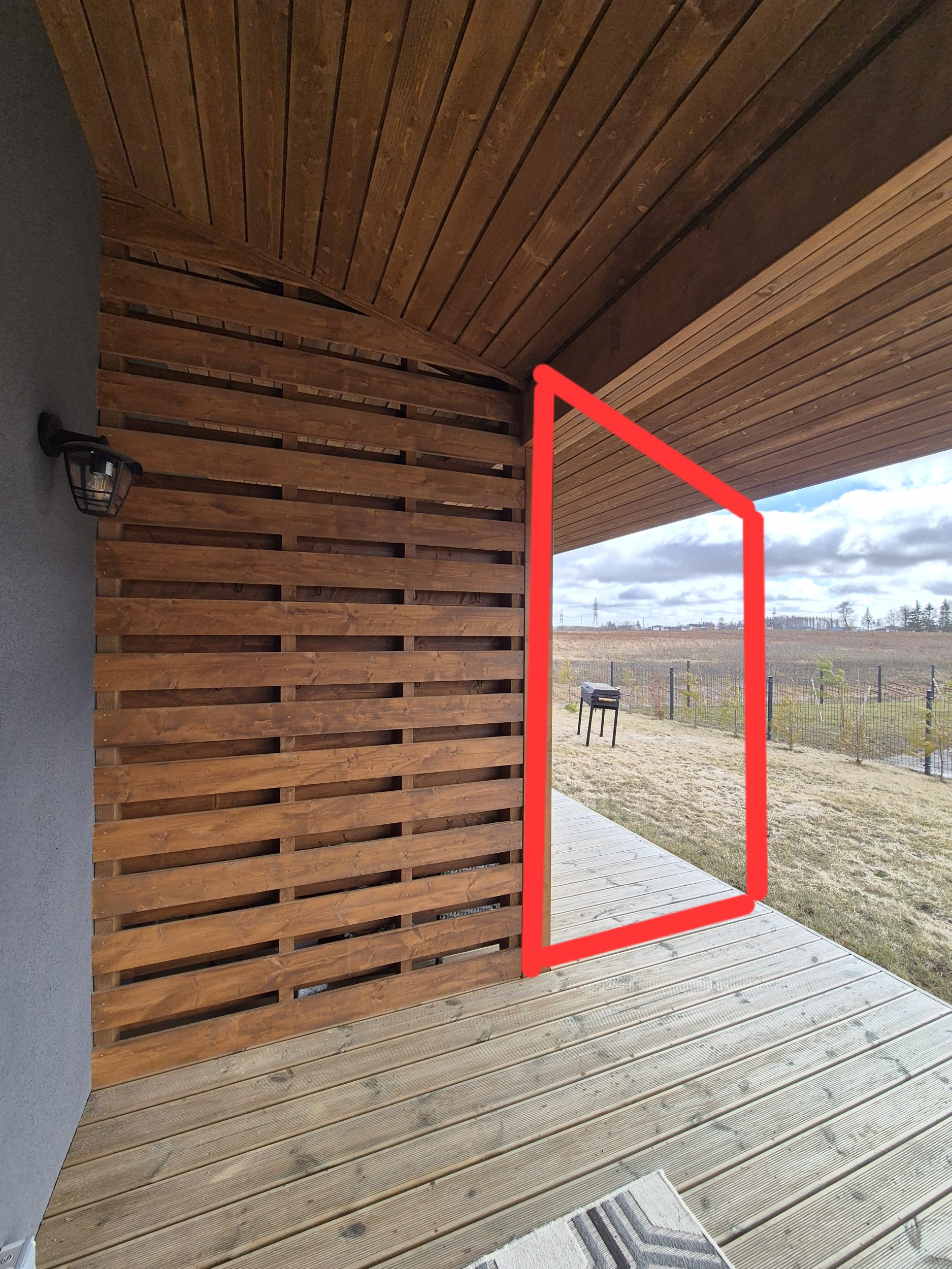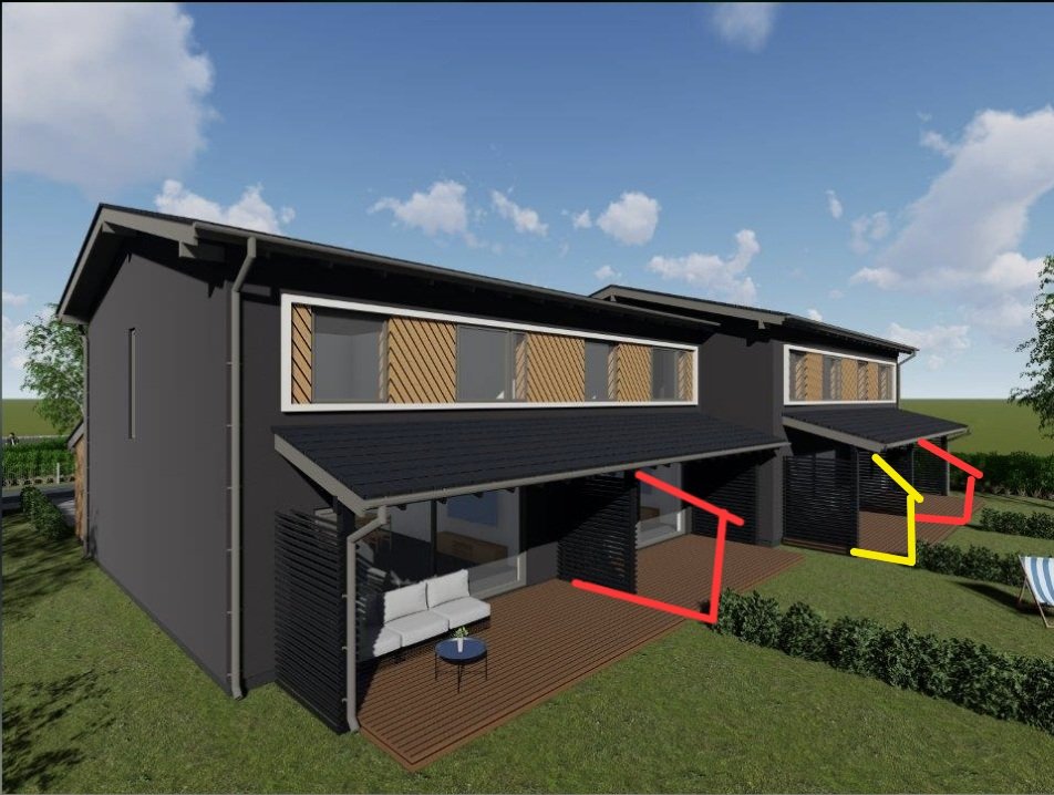 Teise boksi parempoolsem sein tuleb terrassiga lõpuni ehitada, kuhu jääks ka meetrine paninurk. Juurde ehitatav osa peaks jääma samasugune nagu olemasolev laudis. Puitosad töödelda välitingimuste jaoks.