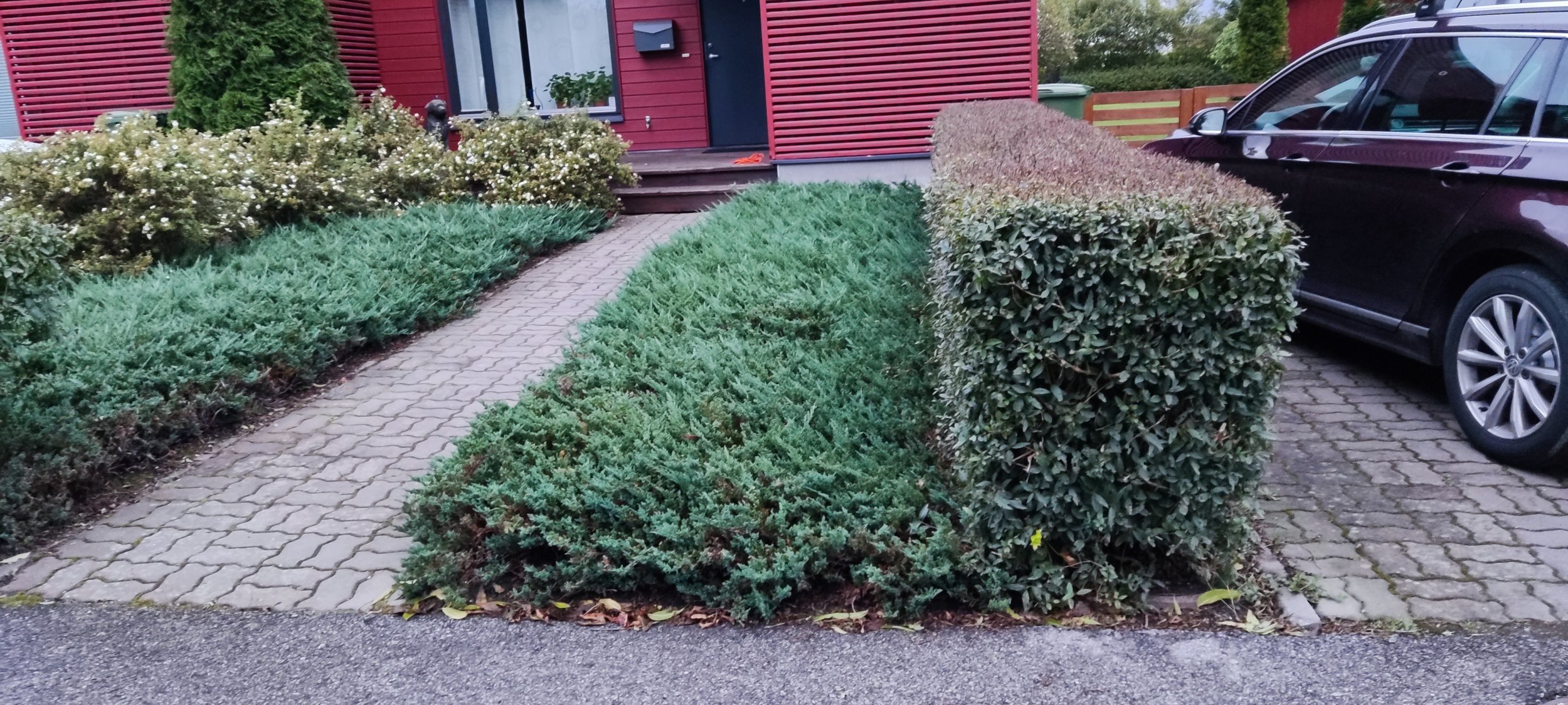 Olemasoleva parkimisala laiendamine heki arvelt. Eemaldame ise eelnevalt heki ja kaevame augu sügavusega. 35cm . Pindala 1,1m x 6,5m. kokku ca. 7,15m2.