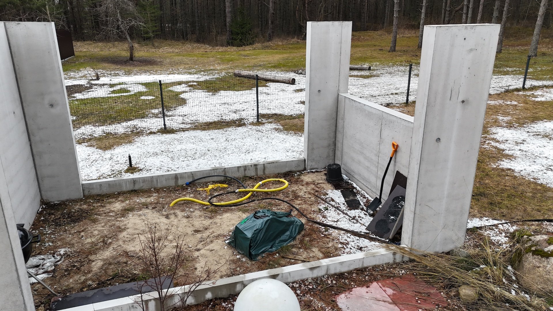 Vundament ja seinad on juba paigas. Veetrassi ja elektri ühendused on ka terrassi all olemas.