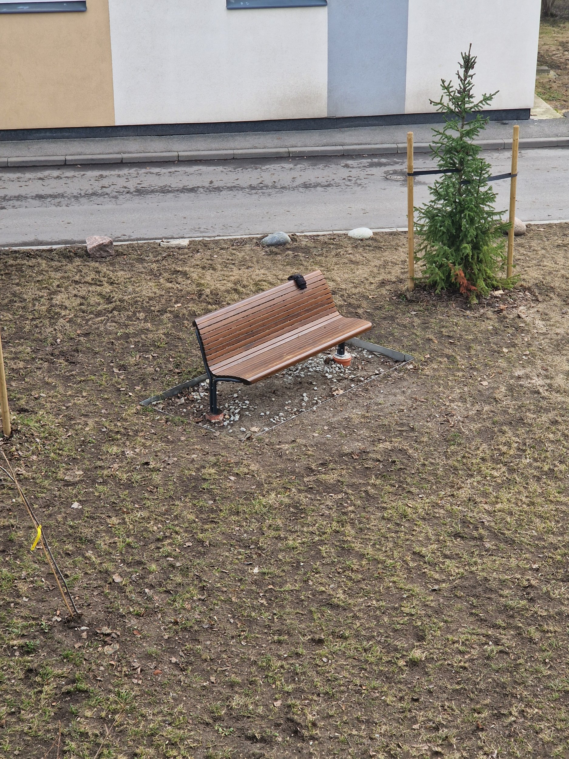 Töö sisu: graniitsõelmete lisamine kahe pingi alusplatsile. Graniitsõelmete fraktsioon 0 - 4 mm, kõrgus/paksus 8 cm.