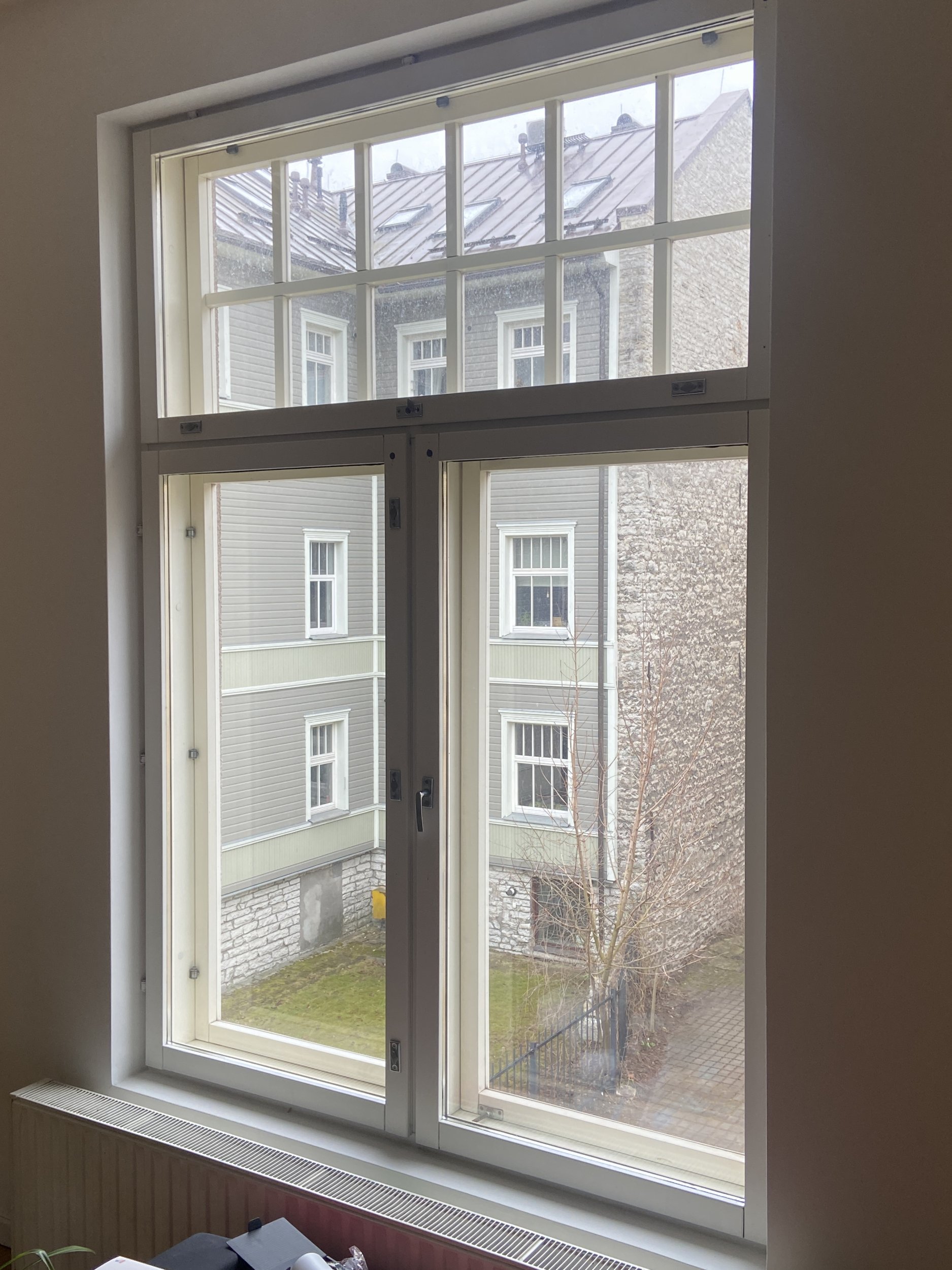 Üleüldiselt on kõikide akende probleem, et avanevad veidi rabedalt; 1 aken ei sulgu täielikult (raam ise OK, aga aknasulused rabedaks muutunud); 1 aknal käib 1 väline raam lengi vastu).