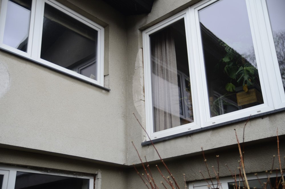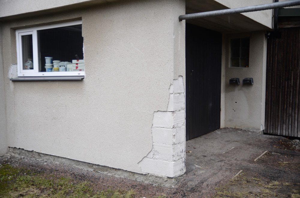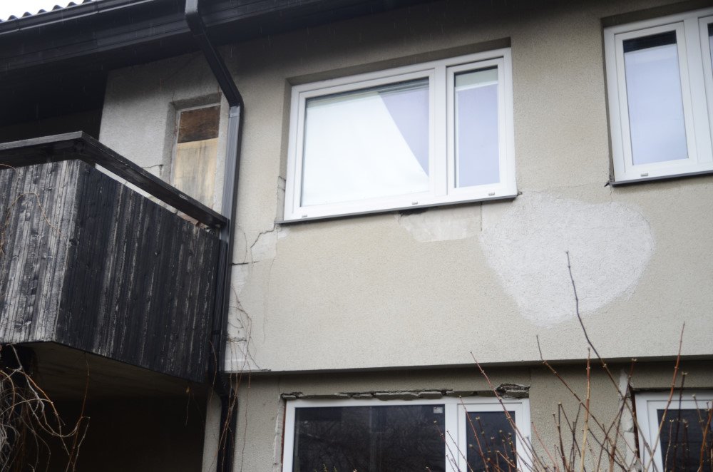 Möödunud sajandil 80-ndatel narvaplokist + lubja pritskrohviga tehtud, reaalselt vast vaja kogu seinapind üle käia + aknapaled. Lisasoojendust EI_VAJA! Sama hallikas pritskrohv.