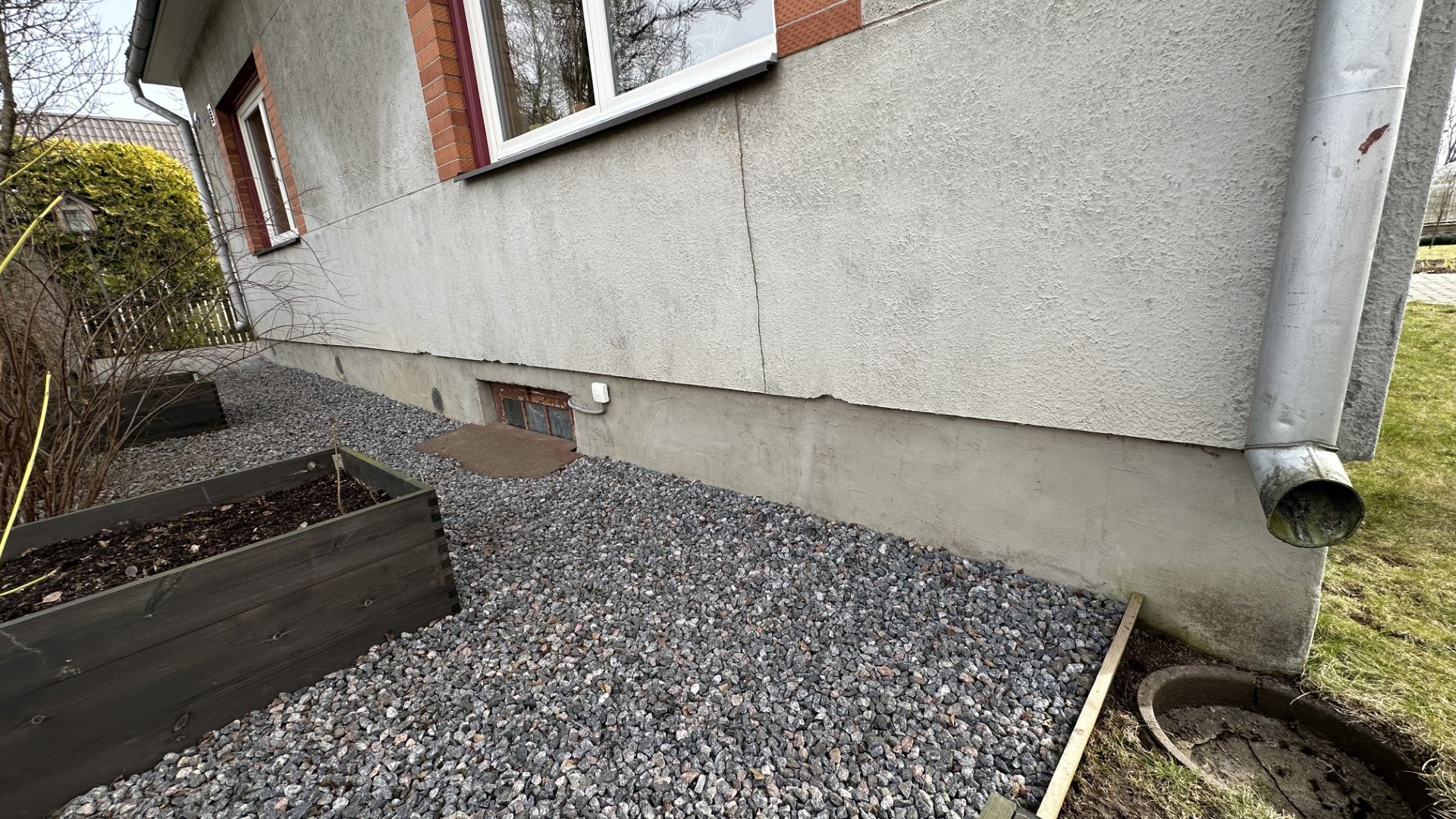Esmalt on tarvis paigaldada aluskiht krohvi ainult ühele Pilt_1 küljele (kus on kolm akent, akna paled ka krohvida), teised küljed on aluskihiga krohvitud, selleks on ostetud Webervetonit 137 kaks 25kg kotti.