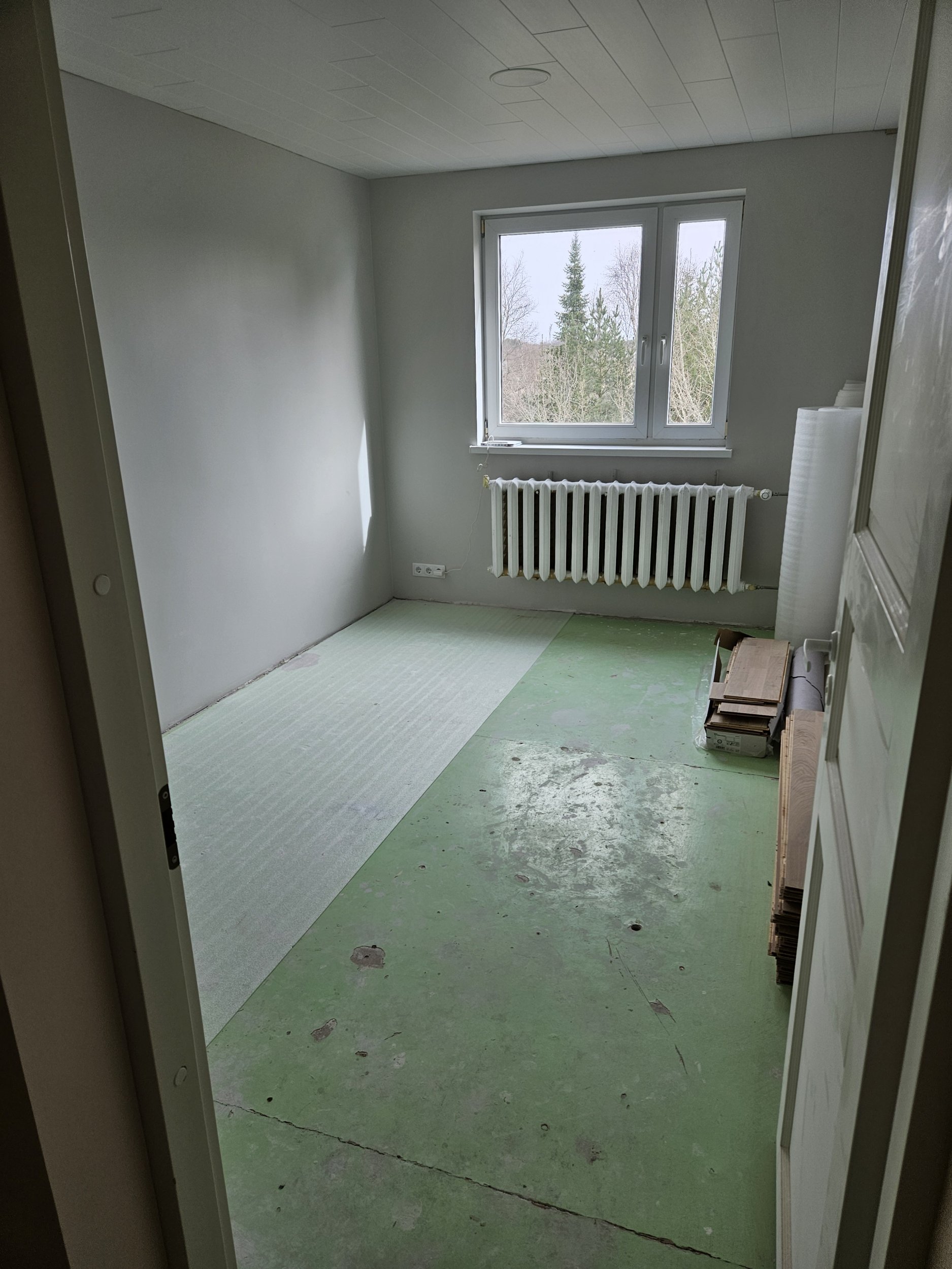 Laudparketi paigaldus vanale nõukaaegsele värvitud põrandale.