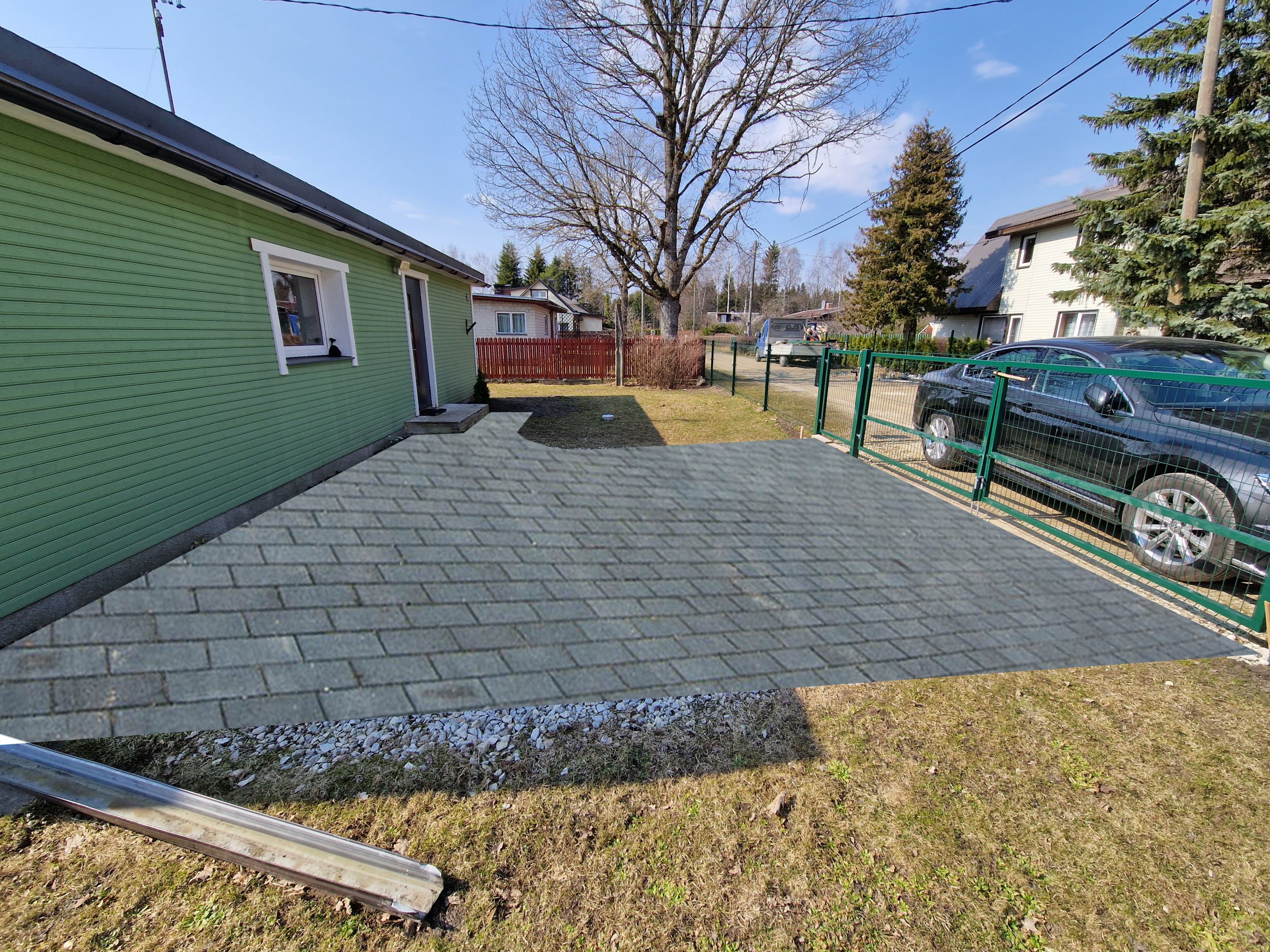 Soov on rajada maja ette kivisillutis auto parkimiseks. Hetkel on antud kohas aastaid tagasi pandud killustik, mis on aja jooksul ära vajunud. Arvan, et see tuleks osaliselt või täielikult eemaldada. Eemaldatud materjali saab vedada 1 km kaugusele mu teisele kinnistule.