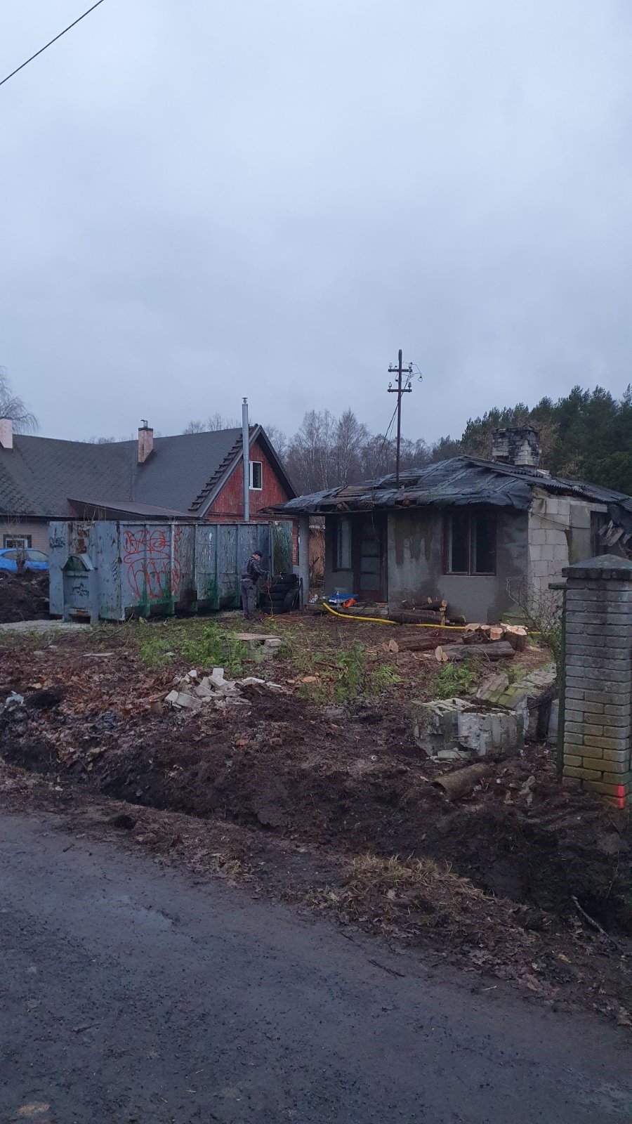 Vaja siis lammutada ja uteliseerida vana aiamaja.Netto suletud pind aiamajal 63 ruutu.Sissesõit krundile on 6 meetrit ja tehtud väike parkla prügikonteineri jaoks.Liikuda saab ainult roomik ekskavaatoriga.Pind mullane ja pehme umbes 40 sm.Maja katus puidust,vaheseinad telliskivist ja seinad tuhaplokkist.Pidi olema kergvundament mida vaja ka väljakaevata.Lisaks ka korrastada territooriumi,kännusi väljakaevata ca.12 tk.