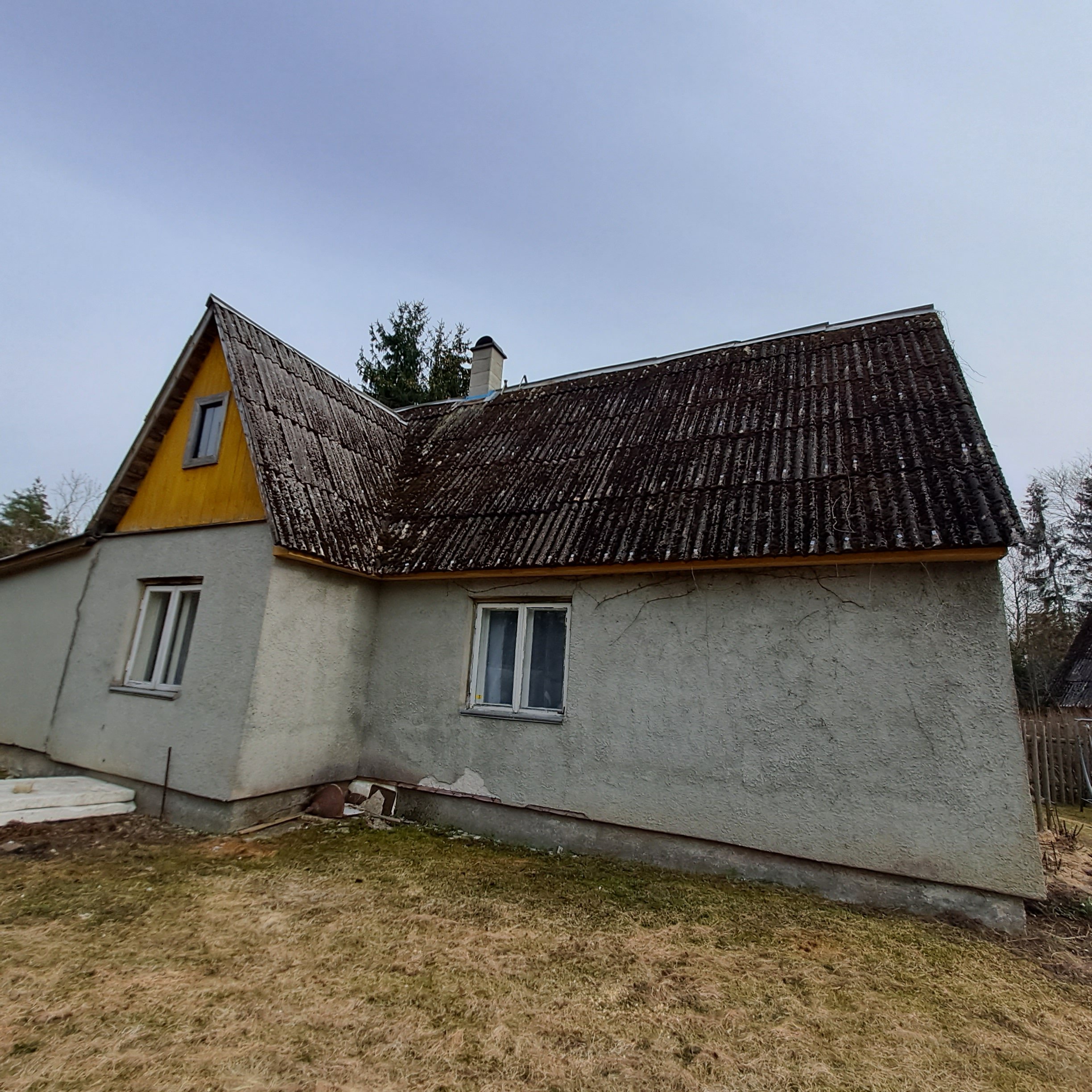 Teisel pool maja pikkus 6 m, siis väljaehituse osa ja veranda. Veranda osa on madala katusega. Soov on uus katus teha mõlemalt poolt pikemalt ja ühe kõrgusega. Veranda poolt ca 3m ja teiselt poolt 2m ja selliselt, et oleks katuse alune rõdu, kuna plaanis ka pööningu osa välja ehitada.