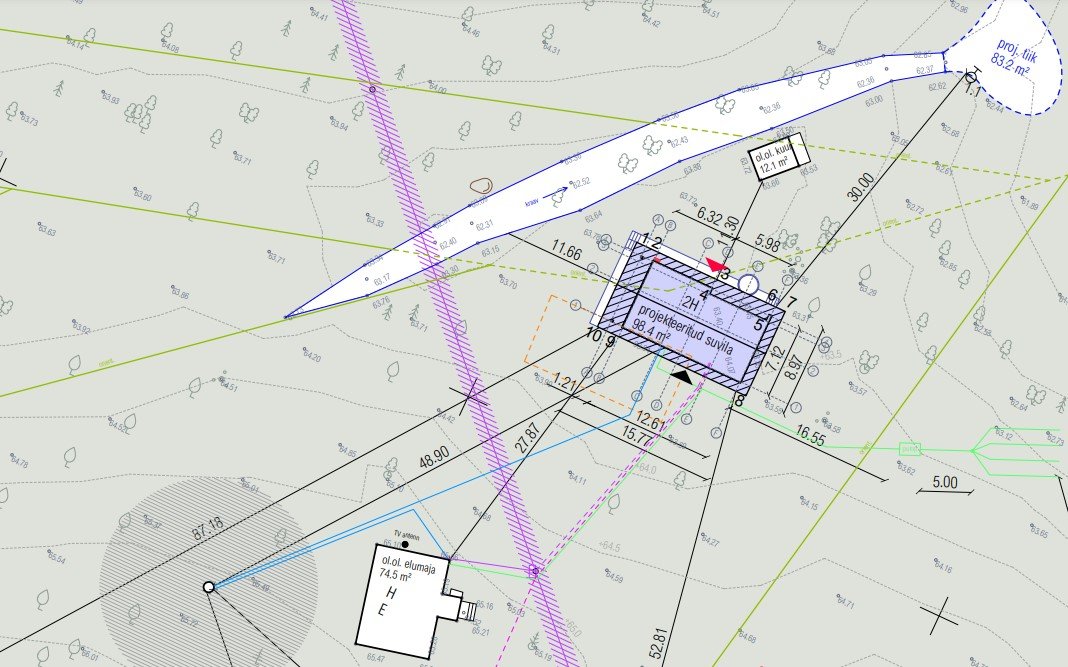 2. El. trassid: elekter üks maakaabel kõriga elektrimõõtjast rajatavasse vundamenti, paralleelselt teine kõri sidekaabli tarvis, mõlemad ca. 30m. Kolmas kõri maakaabliga rajatavast vundamendist vanasse majja ca. 40m